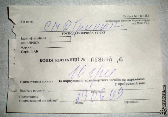 Как нормальному человеку, вам не хочется платить неизвестно кому, неизвестно за что. Но представителей нормальной фирмы, заключившей договор с «Парксервисом», вы не наблюдаете. Что делать? Звонить в милицию, по телефону 300-051, лично Валерию Бондарю? Как человек, приехавший отдыхать и находящийся, можно сказать, в двух шагах от моря, вы понимаете, что тратить на это время, тем более в выходной день, когда ни одна уважающая себя госслужба на звонки не отвечает, по меньшей мере, глупо. Что вы делаете? Правильно, материтесь (даже если вы из очень дальнего зарубежья). Минут через 20 вы выезжаете из парковки, если вам не повезло, и никто не освободил своё место, вы паркуетесь перед поворотом на стоянку, на тротуаре, под знаком «Остановка и стоянка запрещена».
