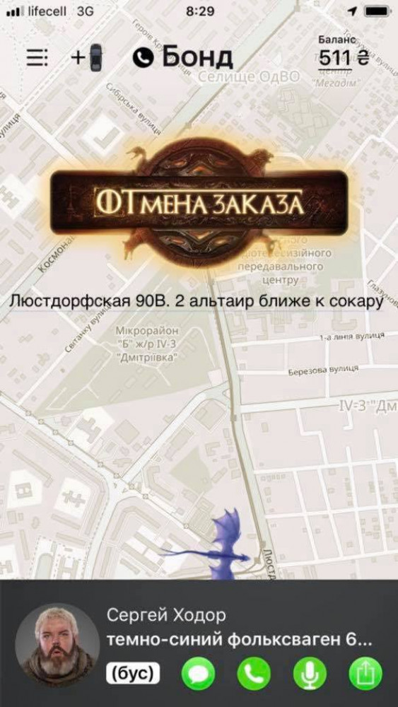 1 апреля к клиентам одесского такси вместо машин летят драконы (новости компаний)Одесское такси «Бонд» представило свой первоапрельский стиль, посвященный культовому сериалу «Игра престолов». Так, иконку машин на карте заменили изображения драконов, изменилась кнопка отмены заказа, а у водителей теперь имена и фотографии персонажей сериала. СМЕРТЬ РОСІЙСЬКИМ ОКУПАНТАМ! Помітили помилку? Виділяйте слова з помилкою та натискайте control-enter Новини по цій темі: 29 квітня 2021: Изысканные панеттоне и классические паски: "Бонд" доставит на дом пасхальные куличи из Santim (на правах рекламы) 25 грудня 2020: Доставка «Бонд» уже везет рождественскую выпечку из магазинов Santim (на правах рекламы) 22 грудня 2020: Предзаказы открыты: «Бонд» доставит новогодние боксы от одесских ресторанов (на правах рекламы) 27 листопада 2020: Грузовое такси Бонд - лучший помощник в "черную пятницу" (новости компаний) |