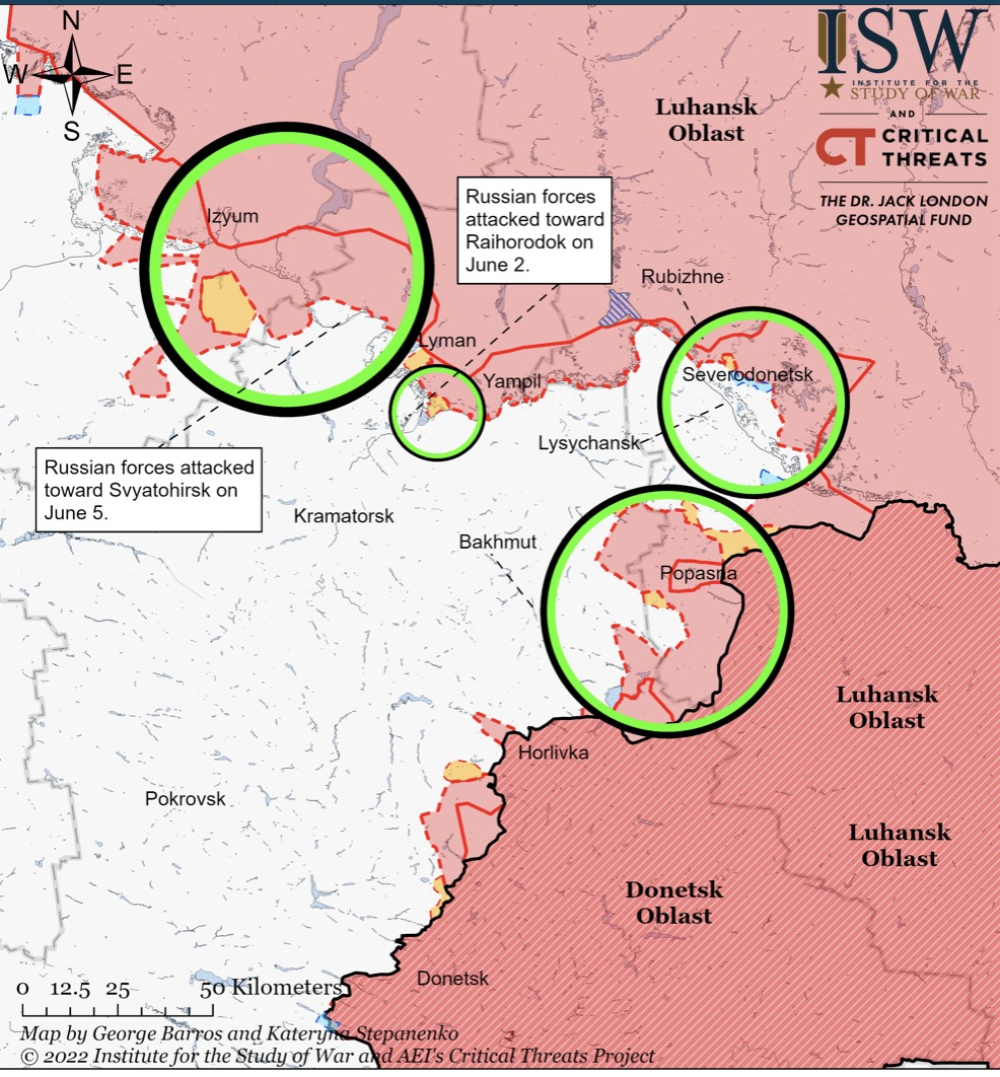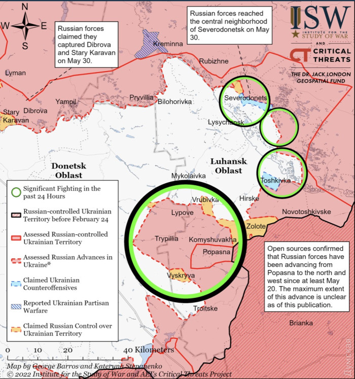 103 дня Украинского Сопротивления: горящий Северодонецк, сложности в районе Славянска и новая западная помощьИдут 103 сутки героического сопротивления украинского народа полномасштабному вторжению нацистской россии. Основные события разворачиваются, как и все последние недели, в Луганской области, где враг не оставляет попыток захватить Северодонецко-Лисичанскую агломерацию. В Северодонецке ведутся ожесточенные уличные бои: один из участников назвал их даже «страшным «Контрстрайком» (это компьютерная игра-«стрелялка»). Ситуация в городе меняется каждый час. Позавчера и вчера украинским защитникам, по всей видимости, удалось отбить ряд кварталов, оттеснив противника на север и восток. Сегодня, однако, обстановка снова ухудшилась, и Силы обороны были вынуждены отойти, закрепившись в промзоне. Юго-восточнее агломерации россияне продолжают рваться к стратегически важной трассе между Бахмутом и Лисичанском. Вчера они подошли к населенному пункту Берестовое, который расположен прямо на дороге, но атаку удалось отбить. Противник понес серьезные потери и откатился. Именно там сложил голову российский генерал-майор Роман Кутузов с позывным Туман. Сообщается, что до полномасштабной войны он командовал 5-й общевойсковой армией, которая дислоцируется в Уссурийске, а после 24 февраля возглавил 1-й армейский корпус (соединение т.н. «днр»). Гибель столь высокопоставленного военачальника, который, по идее, должен руководить войсками, находясь довольно далеко от линии соприкосновения, может свидетельствовать о том, что дела у оккупантов на этом участке идут совсем плохо, и солдат в бой приходится гнать уже генералам. Что ж, для нас это хороший знак. Активные боевые действия ведутся на изюмском направлении, где россияне продолжают безрезультатно топтаться в треугольнике Великая Камышеваха – Вернополье – Дибровное. Там они несут по-настоящему страшные потери. Говорят, во многих ротах у захватчиков осталось по 10-15 человек. Впрочем, не стоит думать, что у наших защитников положение намного лучше. Тем не менее Вооруженные силы Украины предпринимают некие действия в основании выступа, образованного наступающей группировкой рф. На карте это выглядит многообещающим, но посмотрим, что будет дальше. Осторожный оптимизм. Неплохо развивается контрнаступление Вооруженных сил на севере Харьковской области, где наши, по информации Генштаба, рвутся к трассе Белгород-Купянск. Источники «Думской» на передовой говорят, что за последние несколько суток обозначился успех в районе Волчанска. Чтобы хоть как-то купировать эту угрозу, россияне спешно перебрасывают войска с востока на запад. Начали восстанавливать мост через Оскол возле железнодорожной станции Купянск-Узловой. Динамика боевых действий в той части Украины нарастает. Опять-таки, осторожный оптимизм. На славянском направлении враг наносит два сходящихся удара, пытаясь обойти с юга Святогорск. Один – на Долину и Богородичное. Второй – от захваченного Лимана на Старый Караван и Райгородок. Пока что Силы обороны успешно отбиваются, однако ситуация там остается напряженной. На югах особых изменений ситуация не претерпела. Украинское контрнаступление на севере Херсонской области, судя по всему, выдохлось, но Силам обороны удалось удержаться на восточном берегу Ингульца. Сейчас стороны т