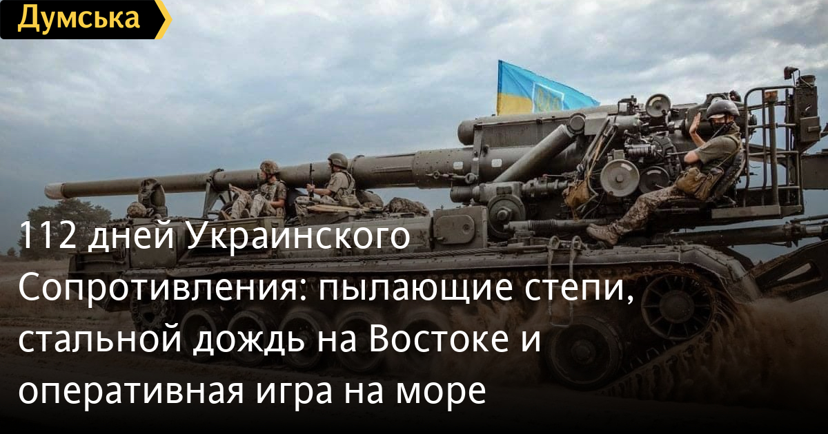112 дней Украинского Сопротивления: пылающие степи, стальной дождь на Востоке и оперативная игра на мореЗавершились 112-е сутки героического сопротивления украинского народа полномасштабному вторжению нацистской россии. Основные события по-прежнему разворачиваются на востоке нашей страны, где враг не оставляет попыток выйти на административные границы Луганской области, а еще занять Славянск и Краматорск Донецкой. На других направлениях россияне или предпринимают беспокоящие действия, стремясь сковать силы украинских защитников, или упорно обороняются. Ваша редакция, как обычно, пытается составить объективную картину из отрывочных сведений, поступающих от разных источников с разных участков фронта. К сожалению, выглядевшее многообещающим на карте контрнаступление Сил обороны на севере Херсонской области свелось к серии довольно болезненных для врага, но не получивших развития ударов. Сейчас Силы обороны продолжают удерживать плацдарм на юго-восточном берегу реки Ингулец — увы, не без потерь. Поступает противоречивая информация по поводу переправы у Давыдова Брода: не исключено, что там украинским защитникам пришлось отойти обратно за речку. В других местах, однако, они точно держатся. Лучше обстоят дела на приморском направлении. По данным «Думской», подразделениям трех бригад Вооруженных сил за последние несколько суток удалось несколько продвинуться на запад. Они подошли вплотную к селам Правдино, Солдатское и Благодатное, расположенным примерно в 20 км к юго-востоку от Николаева. Штурмовать их пока не решаются, предпочитая воздействовать огнем. Ставшая своеобразным «шверпунктом» Александровка опустела: оккупанты оставили там лишь наблюдательные пункты. Село, которое практически стерто с лица земли, простреливается вдоль и поперек. Бои в этой местности ведутся на больших дистанциях: работает ствольная артиллерия, РСЗО, изредка авиация, как армейская (вертолеты), так и штурмовая тактическая (Су-25). В Херсонской области украинские войска наступают широким фронтом, рассредоточенными порядками и небольшими группами, чтобы свести на нет преимущество противника в артиллерии. Пехота передвигается от лесопосадки к лесопосадке. Враг наносит массированные удары, мы — точечные, но выверенные. И эта тактика приносит свои результаты, хотя, к сожалению, все происходит не так быстро, как хочет общество Да, до освобождения Херсона еще далеко, но он был, есть и будет украинским! Как и Крым и Донбасс! Увы, россияне применяют фосфорные боеприпасы, и сейчас поля Херсонщины буквально горят. Многие населенные пункты в зоне боевых действий прекратили существование: от них остались только названия и отметки на картах. Но вернемся на восток. Там все по-прежнему — ситуация плохая, однако, как выражаются военные, контролируемая. Наши подразделения нигде не попали в окружение. В Северодонецке идут уличные бои. Украинские силы закрепились в промзоне и периодически наносят контрудары. К сожалению, из-за уничтоженных мостов на Донце снабжение наших подразделений там затруднено. Тяжелое вооружение, в том числе артиллерия, по всей видимости отведено в Лисичанск, который сильно выше Северодонецка. Оттуда можно обстреливать окрестности во всех направлениях. Стратегическая трасса Бахмут-Лисичанск противником не перерезана. Правда, и пол