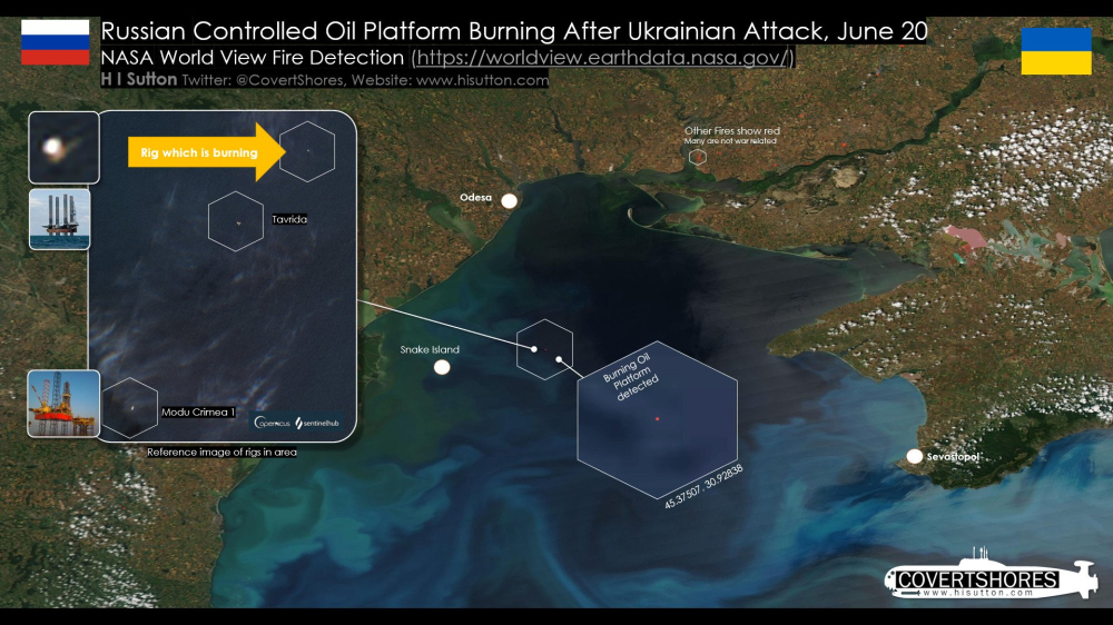 118 дней Украинского Сопротивления: Силы обороны перехватили инициативу в войне на море и движутся в сторону Херсона, а враг теснит защитников в Луганской областиПодходят к концу 118 сутки героического сопротивления украинского народа полномасштабному вторжению нацистской россии. Успешные удары Сил обороны по газодобывающим вышкам «Черноморнефтегаза», которые были захвачены российскими нацистами еще в 2014 году, а также по позициям оккупантов на острове Змеиный свидетельствуют о том, что украинские защитники перехватили как минимум оперативную инициативу в войне на море. Это вдвойне удивительно, если учесть, что сейчас Украина располагает лишь ограниченными возможностями в плане воздействия на противника, который, в свою очередь, по-прежнему сохраняет значительный перевес практически во всем, особенно в кораблях и авиации. Однако избранная Вооруженными силами тактика – гибкая береговая оборона с точечными ракетными или авиаударами по наиболее важным целям – приносит свои плоды. Сыграла свою роль и довольно низкая, как выяснилось, подготовка российских флотских, у которых все плохо с организацией взаимодействия родов войск и планированием. По поводу вышек. Точно известно, что поражена платформа «Таврида», кроме того, не исключено попадание по платформе «Крым-1» (одна из т.н. «вышек Бойко», украинское название – «Незалежність»). Как и другие подобные сооружения, они с 2015 года использовались россиянами в качестве стационарных пунктов отслеживания надводной, подводной и воздушной обстановки – на них были размещены радиолокационные станции «Нева», гидроакустическое и РЭБ-оборудование. Кроме того, на платформах постоянно несут службу подразделения спецназа. По непроверенным пока данным, после удара по «Тавриде» россияне начали эвакуацию своего персонала и с других вышек. Если это правда, мониторинг пространства между Крымом и Одесской областью на данный момент затруднен, что, в свою очередь, резко осложняет жизнь вражеским надводным кораблям, которые и так в последнее время старались не приближаться к украинским берегам. Фото Centre for Global Studies Strategy XXI Что касается Змеиного, то события последних дней, в частности уничтожение российского судна обеспечения «Спасатель Василий Бех», говорят о планомерной работе Вооруженных сил Украины по изоляции этого временно оккупированного клочка суши, который, как и вышки, используется россиянами в качестве платформы для размещения средств мониторинга, радиоэлектронной борьбы, а еще противовоздушной обороны. Кроме того, остров служил перевалочной базой для подразделений спецназа, делавших вылазки в украинское Придунавье. Результатом продолжающейся с апреля украинской операции стало то, что противник давно уже не рискует направлять к острову большие корабли, а сейчас возникли проблемы с подходом даже кораблей четвертого ранга и катеров. И, соответственно, трудности со снабжением размещенных там подразделений. Все непросто у россиян и в Днепровском лимане, где они, напомним, установили контроль над Кинбурнским полуостровом, откуда обстреливают Очаков, и пытались, по слухам, высадиться на островах Майском и Березани. Однако военно-морские силы Украины сорвали планы врага, потопив не меньше двух десантных катеров, и охладили его пыл огневым ударом по Кинбурну. Сейчас активность о