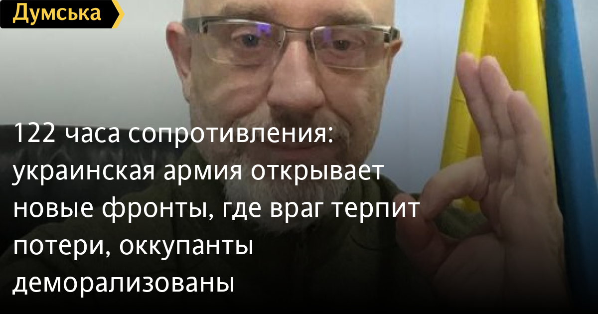 122 часа сопротивления: украинская армия открывает новые фронты, где враг терпит потери, оккупанты деморализованыНа пятые сутки интервенции российские оккупанты оказались неспособны скрывать, что у них начинается агония. Будет справедливо, если специальный международный трибунал будет создан в Харькове. Он должен вынести приговор кремлевским последователям Гитлера, которые его уже «превзошли». Об итогах 122 часов сопротивления написал на своей странице в Facebook Министр обороны Украины Алексей Резников. «На пятые сутки интервенции российские оккупанты оказались неспособны скрывать, что у них начинается агония. Варварские обстрелы ракетами и реактивными системами залпового огня мирных городов – это свидетельство того, что они не способны больше воевать с вооруженными украинцами. Только с мирными, как последние трусы. Это военное преступление. Его непосредственные исполнители и организаторы обречены на оставшееся свое существование носить клеймо убийц и прятаться. Их ждет трибунал. Будет справедливо, если специальный международный трибунал будет создан в Харькове. Кстати, именно в Харькове в 1943 году состоялся первый процесс, в результате которого нацисты были осуждены за военные преступления. Теперь «Харьковский трибунал» должен вынести приговор кремлевским последователям Гитлера, которые его уже «превзошли». Благодаря героизму наших защитников и защитниц открываются новые фронты, где враг терпит потери. Хочу отметить наших ребят на востоке. Они стали непреодолимым барьером для врага, это его ужасно деморализует. На экономическом фронте Россия уже испытала сокрушительные разрушения. Российская валюта превращается в обычную бумагу. Есть первый запрет на экспорт российской нефти. К уничтожению армии оккупантов присоединилось международное ІТ-сообщество. Увеличиваются поставки оружия и всего необходимого из Европы. Даже украинские школьники перешли в наступление на киберфронте. Сотни тысяч людей в России уже узнали, что власть им лжет. Что нет никакой «спецоперации». Есть обычная захватническая война. На которой погибли тысячи россиян. Сопротивление войне внутри самой России растет с каждым часом. В эти дни украинцы демонстрируют россиянам, чем отличаются свободные люди от рабов, граждане от порабощенных тираном. Те, кто годами восхищался взбешенным маньяком, теперь обречены на десятилетия искупления. Украина победит! Слава Украинской Армии! Слава Украине! Министр обороны Украины Резников Алексей» СМЕРТЬ РОССИЙСКИМ ОККУПАНТАМ! Заметили ошибку? Выделяйте слова с ошибкой и нажимайте control-enter |