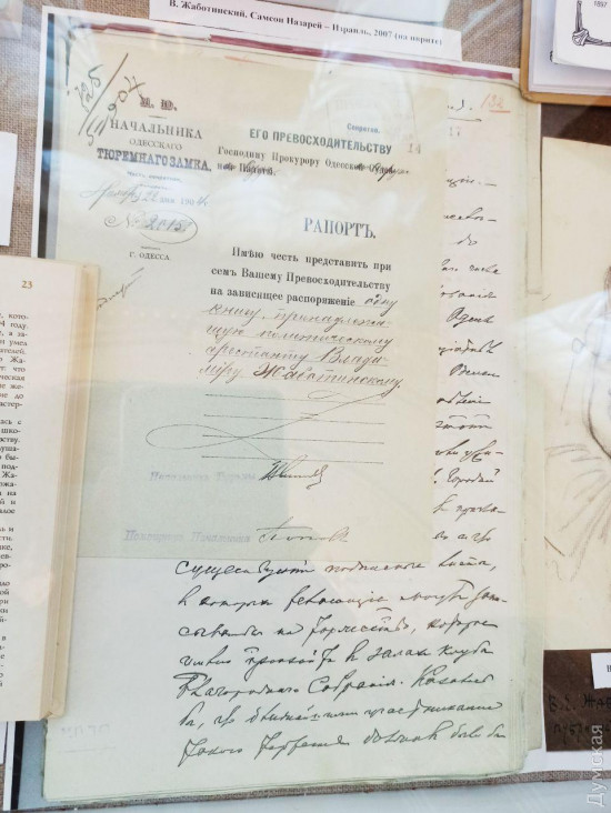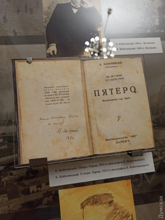 Сегодня в Золотом зале Одесского литературного музея открылась выставка, посвященная еврейскому писателю, поэту и лидеру правого сионизма Владимиру (Евгеньевичу) Зееву Жаботинскому. Дата выбрана неслучайно — 4 августа исполнилось 80 лет со дня смерти писателя, а 17 октября этого года исполняется 140 лет со дня рождения. Экспозиция заняла несколько витрин в эркере зала музея. Здесь представлены как оригиналы, так и копии документов, фотографий, книг и картин, свидетельствующих о жизни знаменитого одессита. Часть материалов была взята из фондов музея, а часть – научные сотрудники отыскали в одесских городских архивах. Среди наиболее значимых экспонатов – выписка из раввината о рождении Владимира Жаботинского, перевод поэмы Эдгара Алана По «Ворон» на русский язык, литературный справочник «Жаботинский в Одессе», шаржи Михаила Линского, книги с автографами и многое другое. Также представлены копии фотографий внутренних интерьеров дворца Гагариных (ныне Литературный музей) начала 20-го века, в частности Золотой, Виноградный и Охотничий залы. В этом особняке собирались члены Литературно-артистического общества или коротко ЛАО, одним из которых был юный Жаботинский. Среди прочих документов есть запись в книге одесского раввината о заключении брака между Владимиром Жаботинским и Ханной Гальпериной и трогательный мадригал, посвященный возлюбленной писателя. Этот брак подарил поэту сына Ария. Известно, что потомки Жаботинского до сих пор проживают на территории Израиля, о чем так мечтал сам Владимир Евгеньевич. «Главным в его жизни — было создание государства Израиль и он всего себя посвятил воплощению этой мечты», — отметила ведущий научный сотрудник музея Анна Божко. К слову, в конце прошлого года в музее появилась постоянная экспозиция, посвященная Жаботинскому, где представлены экспонаты, связывающие его с Одессой. Выставка будет открыта до октября. СМЕРТЬ РОСІЙСЬКИМ ОКУПАНТАМ! Помітили помилку? Виділяйте слова з помилкою та натискайте control-enter |