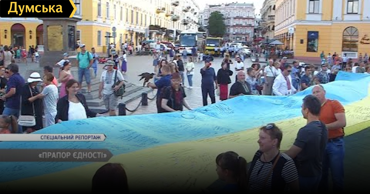 На Приморском бульваре прошла всеукраинская акция, в рамках которой одесситы и гости города оставили на флаге свои пожелания Родине и всем украинцам.