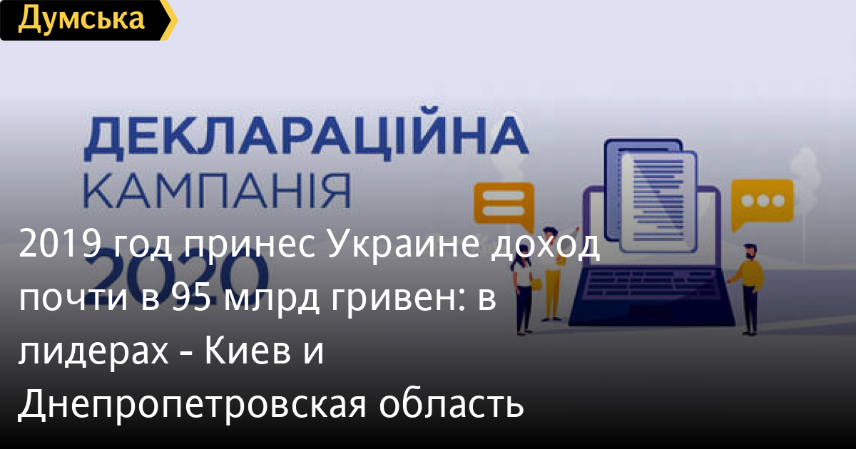 2019 год принес Украине доход почти в 95 млрд гривен: в лидерах — Киев и Днепропетровская областьЗа 2019 год украинцы задекларировали 94,5 миллиардов гривен дохода. Именно такую цифру называет пресс-служба Государственной налоговой службы Украины. Общий задекларированный налогоплательщиками доход за 2019 год - 94,5 млрд грн: это почти на 11 млрд грн или на 13% больше, чем в 2018 году. «Самые большие суммы доходов задекларированы налогоплательщиками города Киева — 43,5 млрд грн, Днепропетровской области — 7,5 млрд грн, Киевской — 5,3 млрд грн, Харьковской — 4,6 млрд грн и Одесской области — 4,3 млрд грн», — говорится в сообщении. Налоговые обязательства по налогу на доходы физических лиц налогоплательщиками определены в сумме 2,7 млрд грн, из военного сбора — 0,4 млрд грн. В Налоговой напомнили, что последний день уплаты налоговых обязательств истекает 30 сентября 2020 года. Срок для представления деклараций об имущественном состоянии и доходах был продлен с 30 июня на конец сентября в связи с введением в стране карантинных мероприятий. СМЕРТЬ РОССИЙСКИМ ОККУПАНТАМ! Заметили ошибку? Выделяйте слова с ошибкой и нажимайте control-enter |