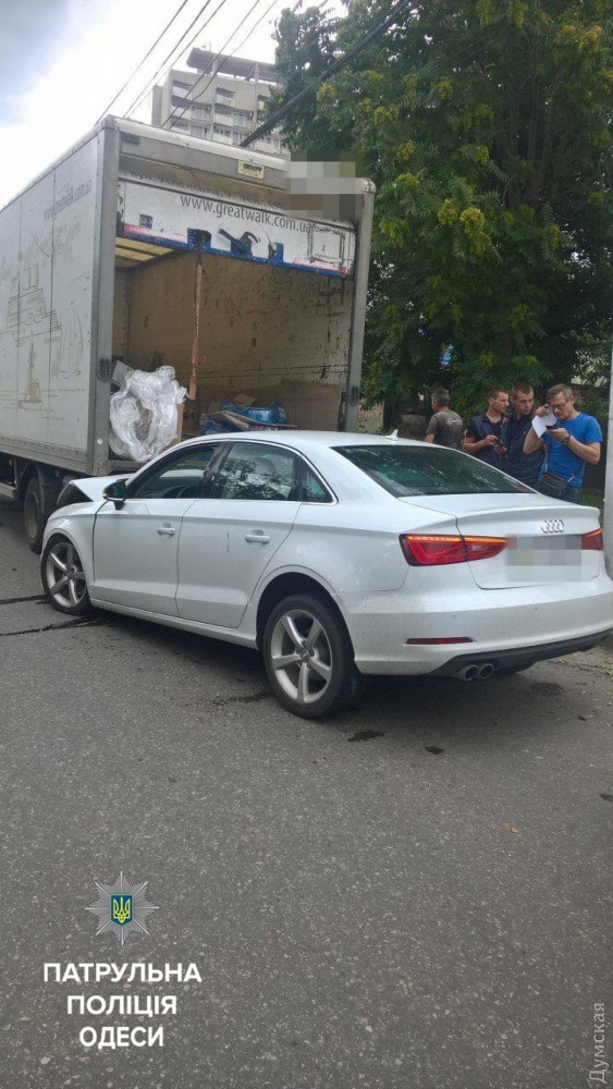 «Правоохранители заметили указанную машину на Фонтанской дороге. Инспекторы начали следовать за автомобилем с целью его остановки. Заметив патрульных, нарушитель резко увеличил скорость, не справился с управлением и совершил наезд на препятствие — бетонный забор, после чего его отбросило на припаркованный грузовик», — отметили в пресс-службе патрульной полиции.