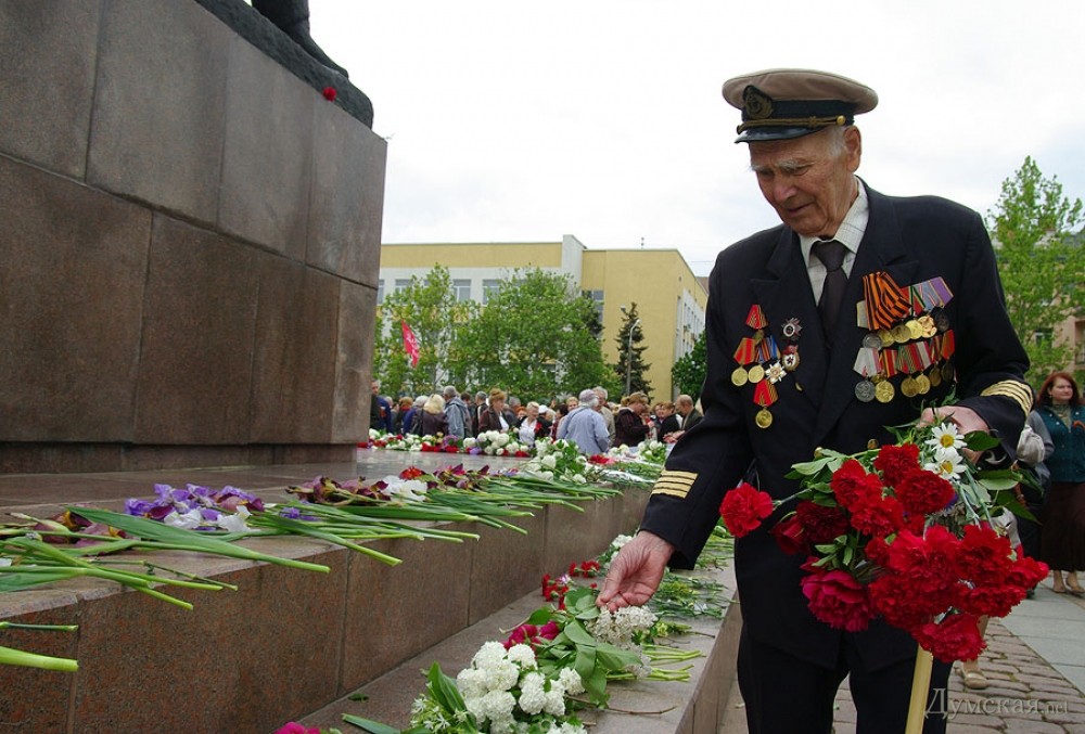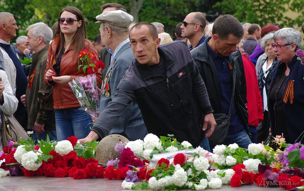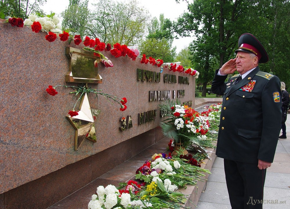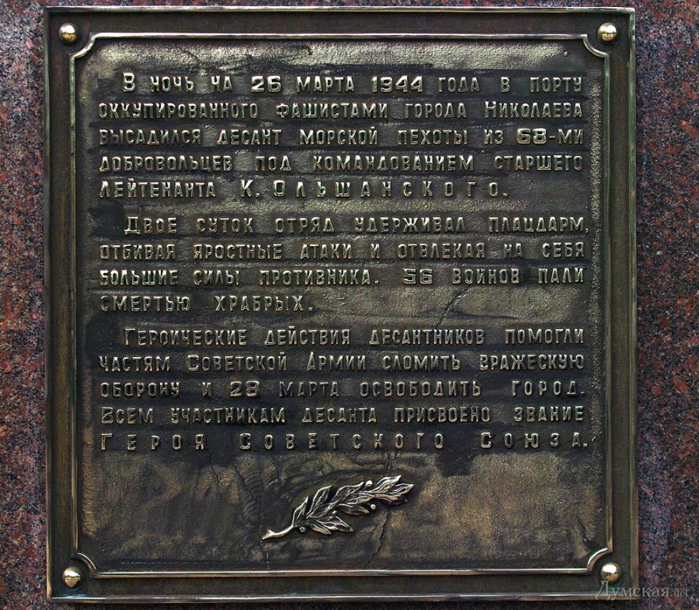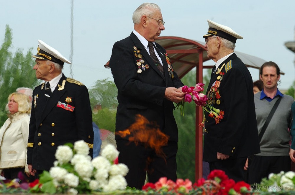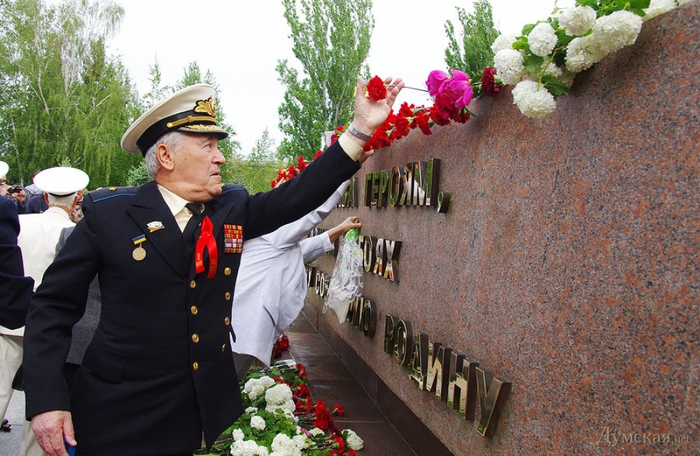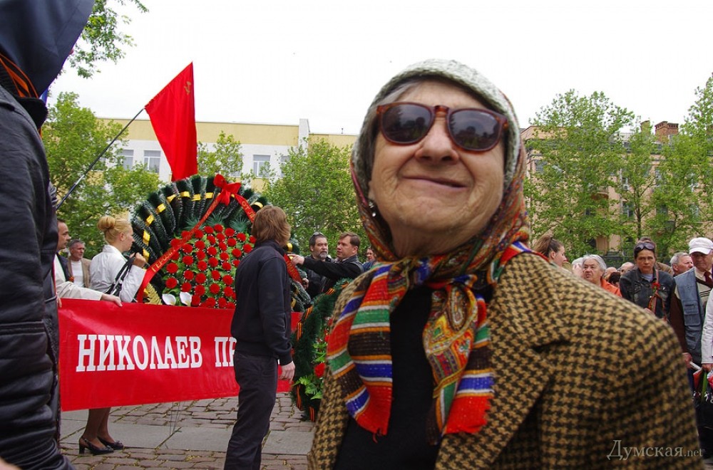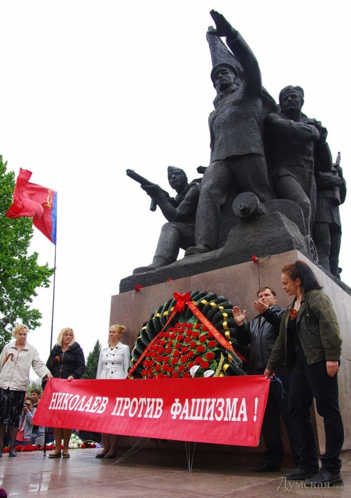У мемориала Героям Ольшанцам (десантникам, которые под командованием старшего лейтенанта Константина Ольшанского освободили 26 марта 1944 года николаевский порт и удерживали его до подхода советских войск) собрались сотни николаевцев. Они возложили в несколько этапов цветы, после чего долго пели военные песни, поздравляли ветеранов и приравненных к ним военных пенсионеров. Участники собрания рассказали «Думской», что в толпе было выявлено около десятка провокаторов, вооруженных холодным оружием. Проверить эту информацию нам не удалось.