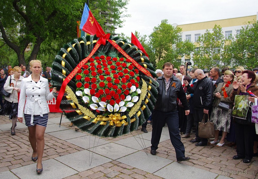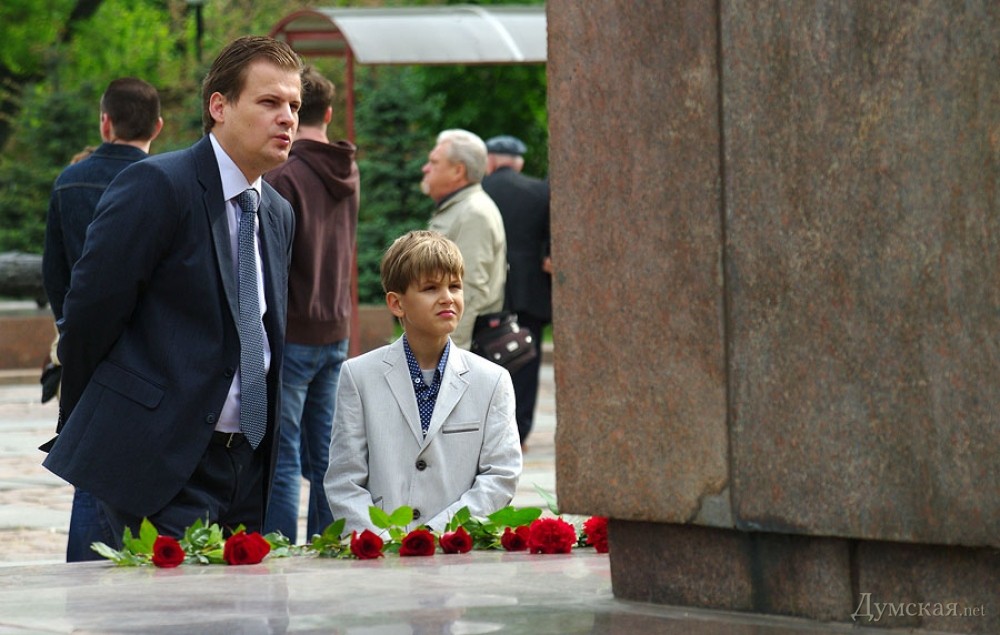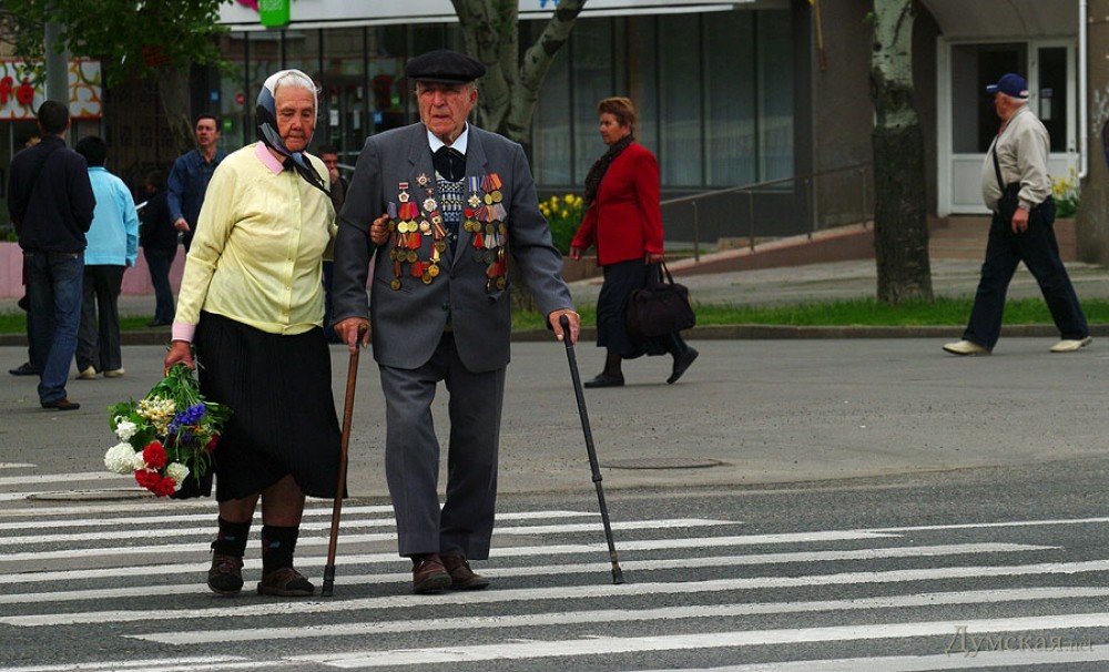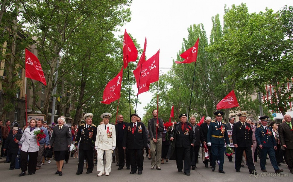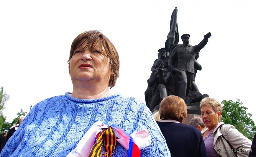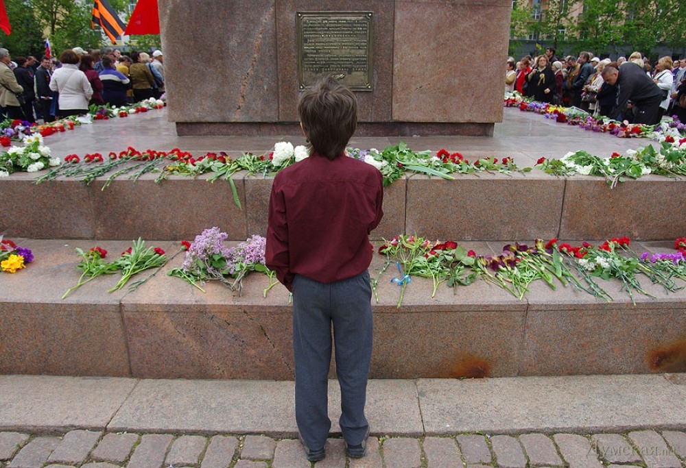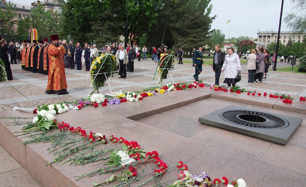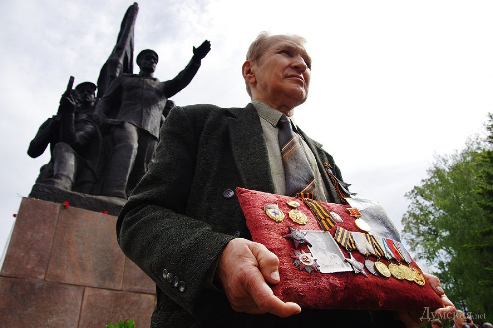 У мемориала Героям Ольшанцам (десантникам, которые под командованием старшего лейтенанта Константина Ольшанского освободили 26 марта 1944 года николаевский порт и удерживали его до подхода советских войск) собрались сотни николаевцев. Они возложили в несколько этапов цветы, после чего долго пели военные песни, поздравляли ветеранов и приравненных к ним военных пенсионеров. Участники собрания рассказали «Думской», что в толпе было выявлено около десятка провокаторов, вооруженных холодным оружием. Проверить эту информацию нам не удалось.