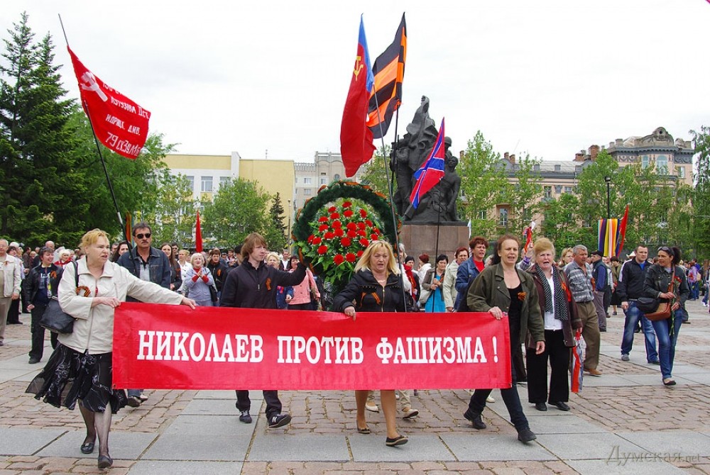 Несмотря на заявления главы СНБОУ о планируемых провокациях, День Победы в Николаеве состоялся мирно и без эксцессов. Местные власти массовые мероприятия в городе не разрешили, правда, и запретить не смогли. Порядок в центре Николаева обеспечивала милиция и бойцы Нацгвардии.