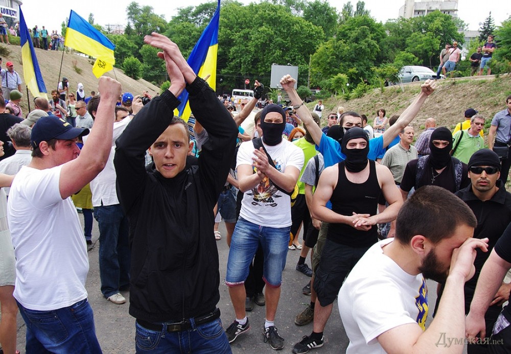 Не, ну на кой хёр этот цирк-балаклавы, маски со свастикой на рожах идиотов! ?Гнать фашистов с города! Это мой город, город моего отца и моего деда.Никогда он не будет чужим не путинским,ни тягнибоковским.