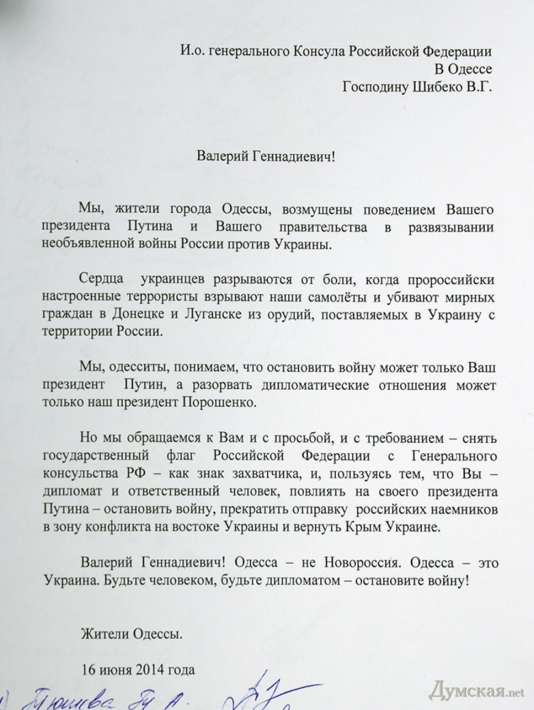Всем участникам спасибо за позицию! Каждаый из вас свою микровойну с агрессором уже выиграл. Стыд и позор местной власти, которая в очередной раз сыграла тупо и не туда! Повторюсь- разумная и достойная позиция  это обратиться по дипломатическим каналам МИДа с просьбой закрыть воеменно амбассаду, выслать дипломатов, спустить флаг и поставить охрану возле обычного пустого админздания. Согласилась бы раша или нет - второй вопрос, но люди бы услышали ПОЗИЦИЮ ВЛАСТИ. Все, конфликт был бы снят.