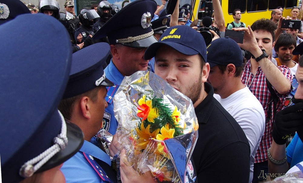 Тем временем в здании облгосадминистрации губернатор Игорь Палица сообщал общественности подробности событий под консульством. Во-первых, по его словам, милиция задержала там четырех провокаторов, которые хотели под видом «Правого Сектора» взорвать подчиненных Сергея Лаврова. А во-вторых, этих провокаторов усиленно пытается «отмазать» некий нардеп из «Свободы».