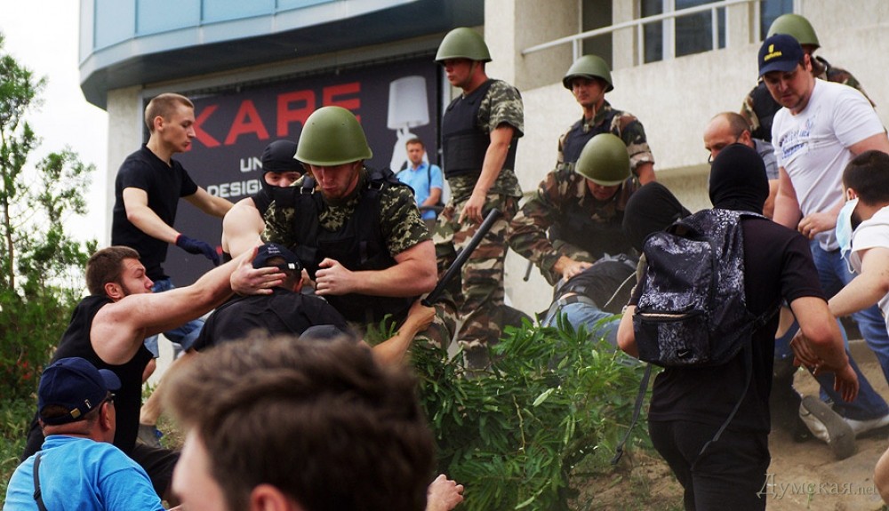 Одесса очередной раз подтвердила, что это жемчужина Украины. А ещё этот митинг сново показывает, что здесь есть патриоты которые и душу и тело положат за нашу Одессу  Украину. И есть часть лиц в правоохранительных органах, которые боятся ехать в зону АТО, вплоть до увольнения с органов но простых патриотов дубасить очень даже не против. Печально но исправимо. Спецотряд шакал позор!!!