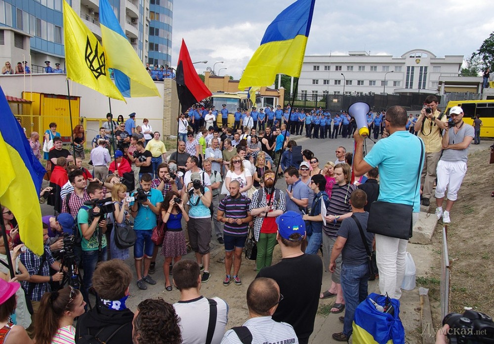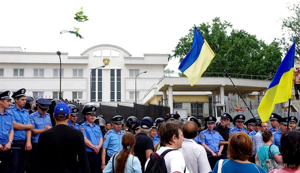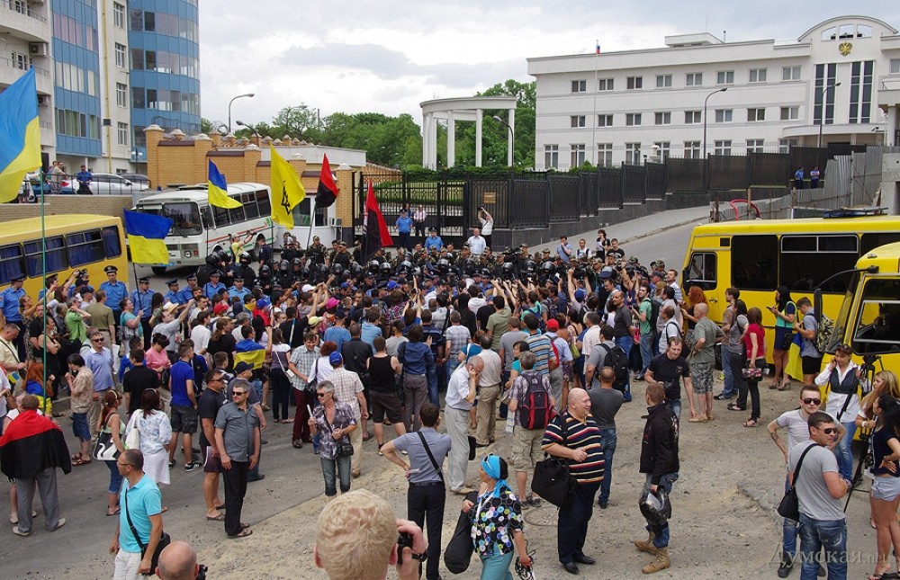 Под Генконсульством России сегодня слегка подрались. Свидетелем этого захватывающего действа стал корреспондент «Думской», который спешить поделиться с читателями своими впечатлениями.