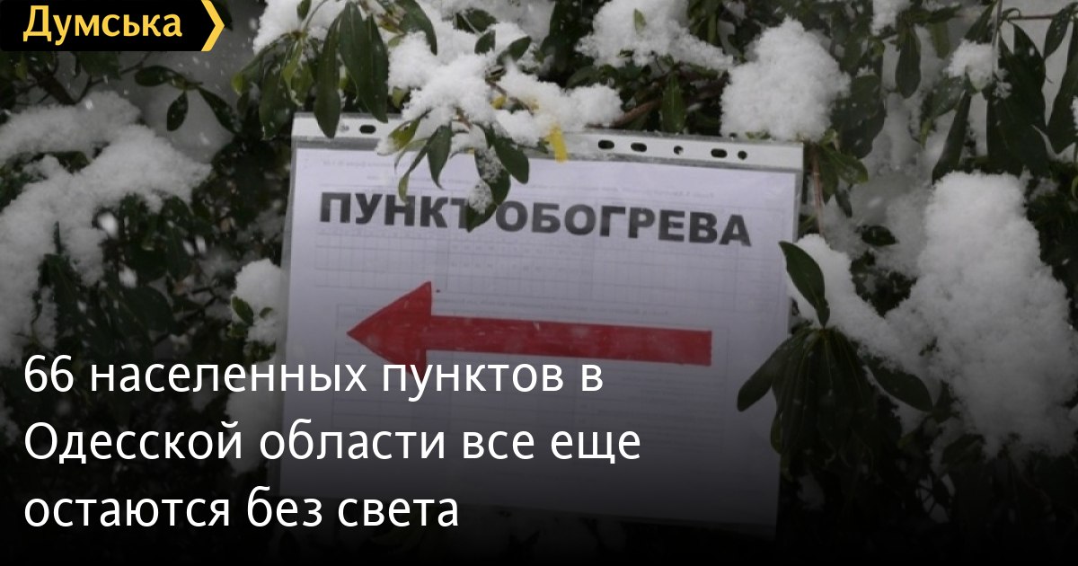 В Одесской области продолжаются работы по восстановлению электроснабжения в населенных пунктах, обесточенных из-за непогоды. По данным ГСЧС, по состоянию на утро 3 февраля без света остаются 66 сел. 26 населенных пунктов в Коминтерновском районе, 22 - в Раздельнянском, 14 - в Беляевском и 4 - в Ивановском.
