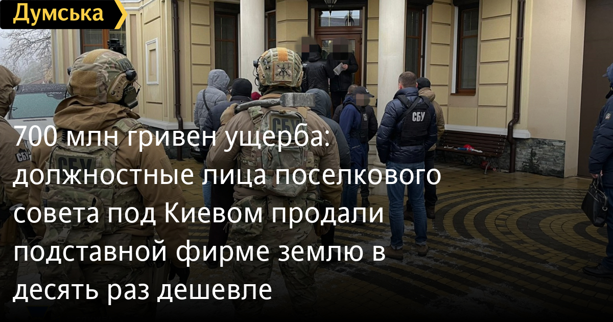 700 млн гривен ущерба: должностные лица поселкового совета под Киевом продали подставной фирме землю в десять раз дешевлеДолжностных лиц одного из поселковых советов разоблачили на многомиллионных махинациях с землей в Обуховском районе под Киевом. Как сообщили в СБУ, подозреваемые придумали механизм присвоения земли через ее продажу подконтрольной частной фирме. По предварительным данным цену на участки занизили в 10 раз, чем нанесли громаде ущерб на 700 млн гривен. К противоправной сделке привлекли оценщика, экспертный вывод которого позволил продать семь земельных участков общей площадью более 26 гектаров подставной компании по заниженной цене. Дельцы заплатили громаде 55 млн гривен, хотя по оценкам специалистов средняя рыночная стоимость этой земли составляет почти 800 млн грн. Продолжается досудебное следствие по ч. 5 ст. 191 (присвоение, растрата имущества или завладение им путем злоупотребления служебным положением) УК Украины. СМЕРТЬ РОССИЙСКИМ ОККУПАНТАМ! Заметили ошибку? Выделяйте слова с ошибкой и нажимайте control-enter |