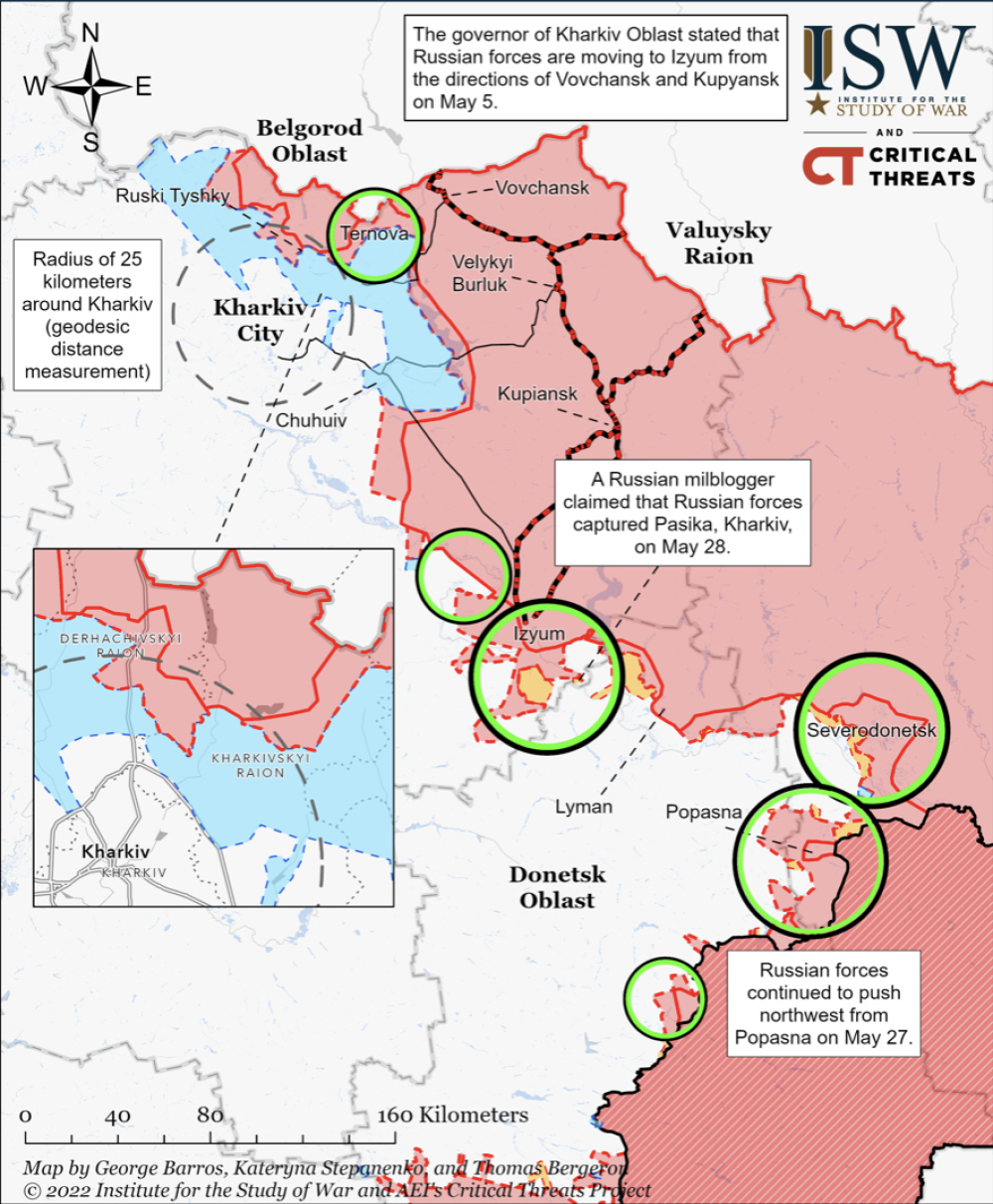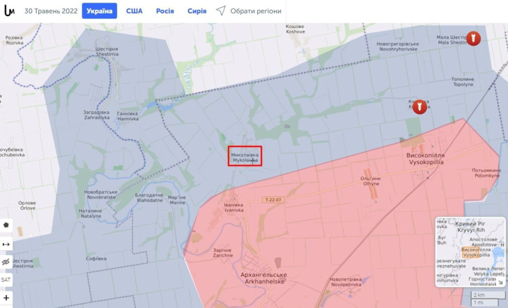Вечером 30 мая ГШ проинформировал, что оккупанты отошли из села Николаевка Херсонской области. Населенных пунктов с таким названием в регионе шесть. На правом берегу Днепра, где сейчас ведутся боевые действия, две Николаевки. Одна находится на границе с Днепропетровской областью, другая – на берегу Днепра. Если освобождена первая, что более вероятно, то это означает, что Силы обороны постепенно улучшают свое тактическое положение и обеспечивают фланги, если вторая – нам удался глубокий прорыв, и позиции россиян рассечены. Конечно, хочется побед, но ваша редакция все же склоняется к первому варианту.