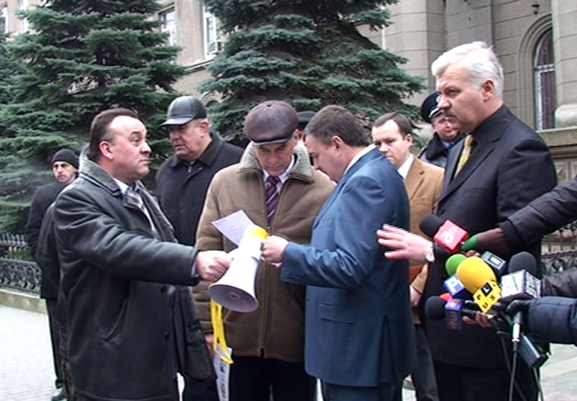 После общения с сотрудниками УСБУ руководитель областной организации ветеранов войны в Афганистане Афанасий Радукан сообщил участникам акции, что руководство управления СБУ приняло их письменное заявление, адресованное Валентину Наливайченко.