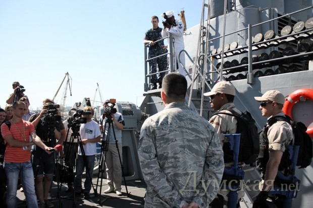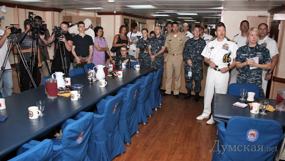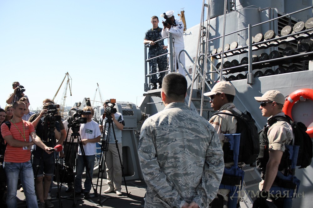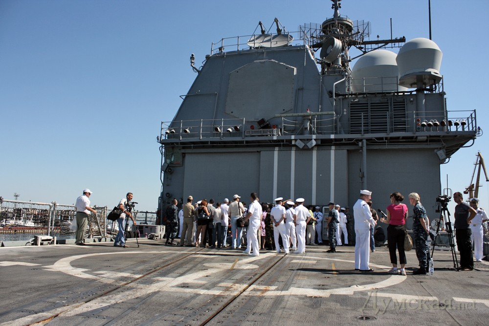 В рамках открывшихся вчера в Одессе международных военных учений «Си Бриз-2011» в Одесский морской порт прибыл ракетный крейсер ВМС США «Anzio». Сегодня же американские моряки провели экскурсию по своему крейсеру для представителей СМИ.