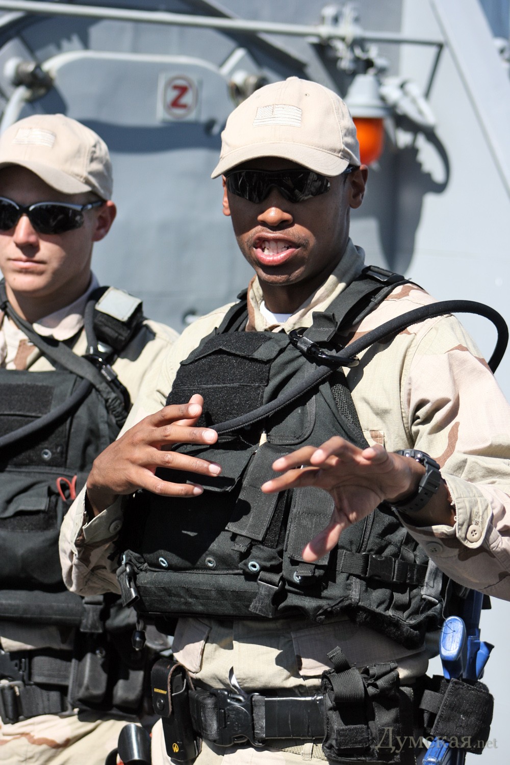 Лейтенант Лусиано Терадо рассказывает, что ждет пиратов, если они попадут в американские руки. К пиратским судам морпехи подплывают на лодках - в полном вооружении