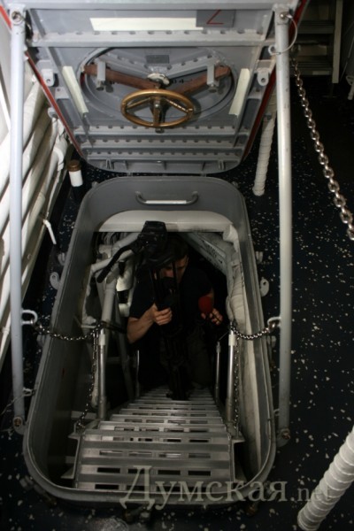 Кстати рисунок в коридоре это копия значка, на рубашке капитана. Чужие они здесь, гости непрошенные. В 90 х годах тоже крейсер нато стоял в порту, но тогда все было теплее в отношениях, я даже перчатки выменял у натовца на рубль с лениным)) А сейчас кроме торпеды им в днище ничего на ум не приходит.