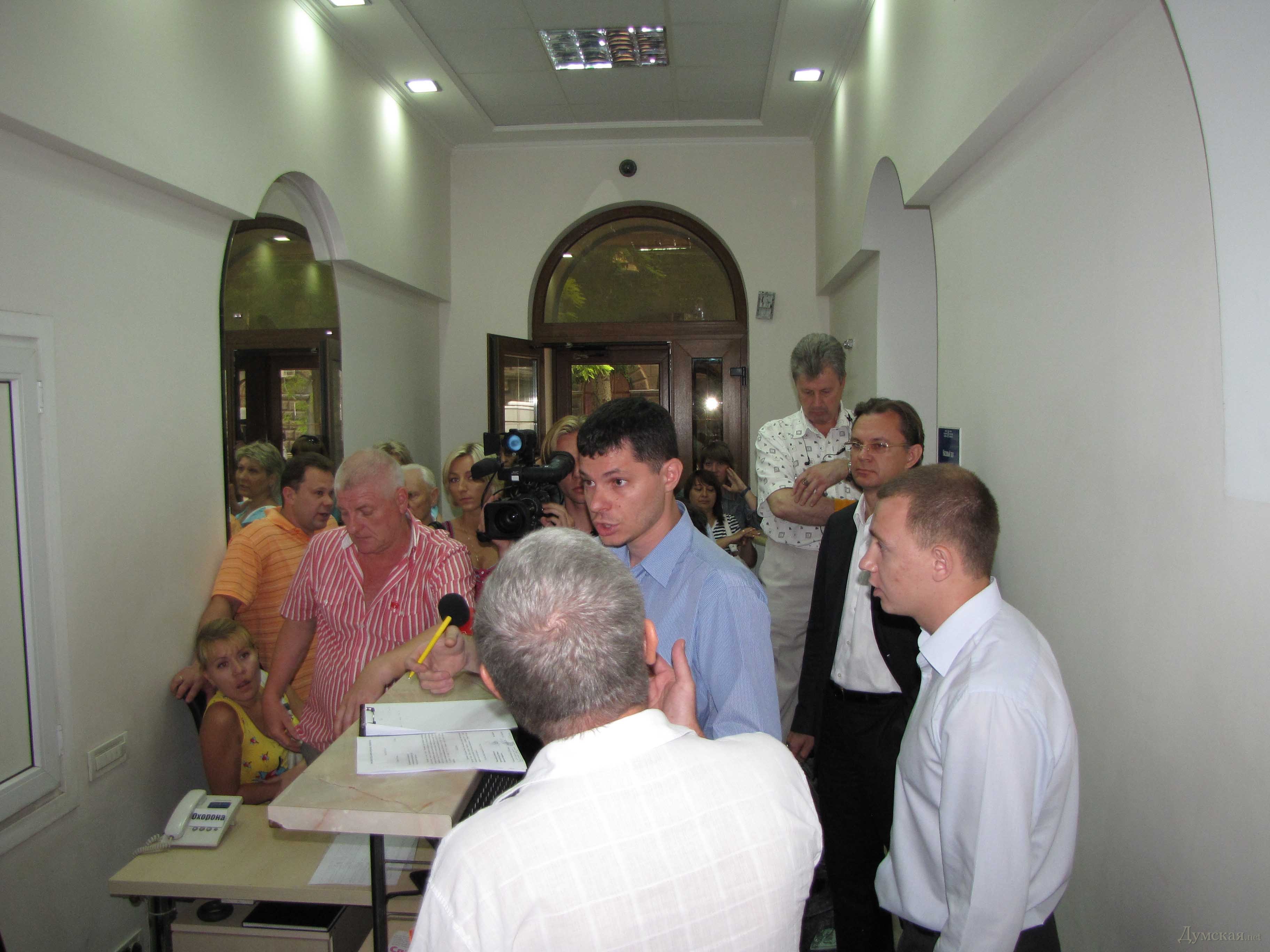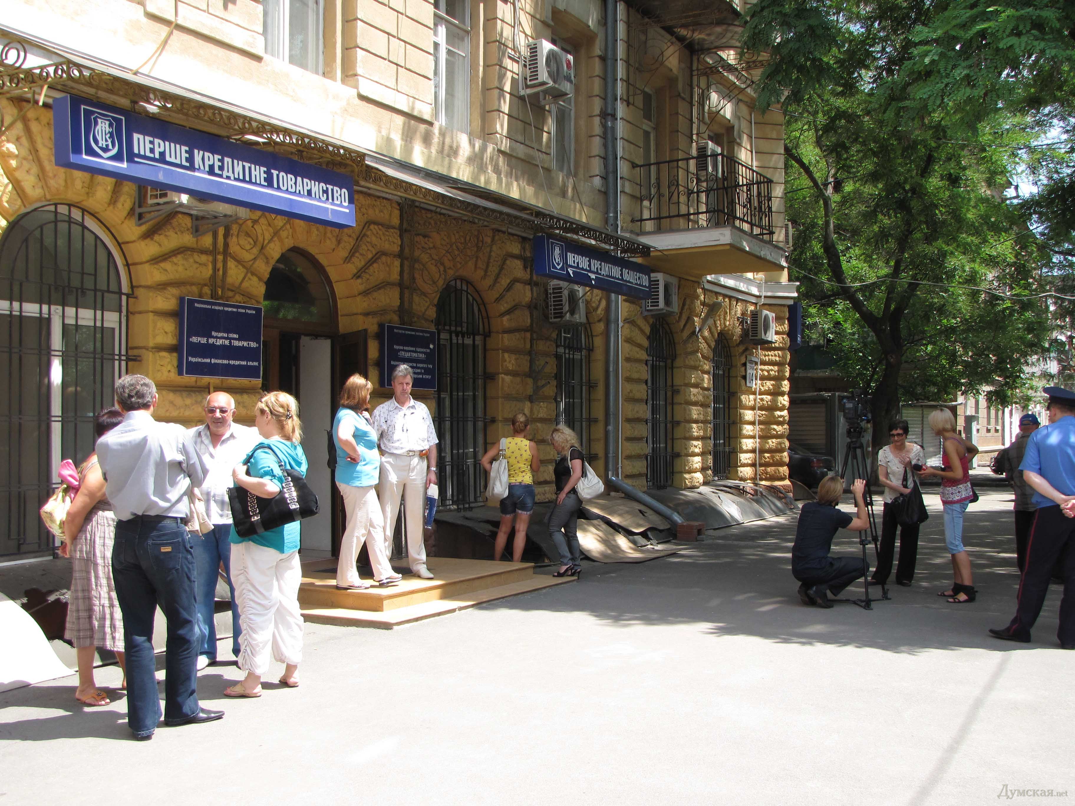 8 июля в первой половине дня у дверей кредитного союза «Первое кредитное общество» собрались бывшие сотрудники этого учреждения во главе с его создателем Андреем Азаровым. Однако войти в здание им долго не удавалось. В этот день истекают полномочия временной администрации «Первого кредитного общества», которую год назад назначил Госфинуслуг. В свою очередь, Наблюдательным советом кредитного союза на свою прежнюю должность председателя правления был возвращен Андрей Азаров. Однако нынешнее руководство «Первого кредитного союза» не считает решения Наблюдательного совета легитимными, поскольку законность самого Наблюдательного совета оспаривается в Приморском районном суде г. Одесса.