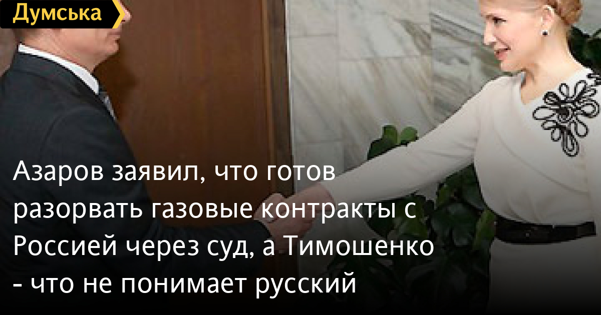 Азаров заявил, что готов разорвать газовые контракты с Россией через суд, а Тимошенко — что не понимает русскийУкраинское правительство изучает возможность расторжения газового контракта с Россией, подписанного экс-премьером Юлией Тимошенко, через суд. Об этом заявляет премьер-министр Украины Николай Азаров. Вместе с тем, по его словам, такое решение пока не принято. По его словам, правительство надеется решить этот вопрос путем переговоров. Кроме того, по словам Азарова, одной из причин того, что Украина пока не обращается в суд, является то, что судебные дела такого рода длятся очень долго. Тимошенко не осталась безучастной: в начале допроса Азарова подсудимая написала в своем микроблоге на Twitter: «Эксперты по капусте пошли. Начинается допрос Азарова. «Гутарит» на русском. Сейчас попрошу переводчика согласно статье 19 Уголовно-процессуального кодекса». Она также допускает, что будет не один допрос Азарова: «Уже в самом словосочетании «допрашивают Азарова» есть что-то позитивное и обнадеживающее. Не последний раз, думаю». Экс-премьер также комментирует ответы Азарова: «Судя по тому, что говорит Николай Янович, ему нужен не допрос, а МРТ, потом — массаж, чай с липой и полный покой». Как сообщалось, Азаров прибыл на суд вместе со съемочной группой Кабинета министров и личным фотографом. «Я по-русски не понимаю… обеспечьте мне переводчика с премьер-министром Украины, который не умеет говорить по украински», — заявила Тимошенко в ходе судебного заседания. В свою очередь, судья Печерского райсуда Киева Родион Киреев, председательствующий по «газовому делу», сославшись на законодательство, отметил, что свидетель имеет право говорить на том языке, на котором ему удобно. Обновлено Азаров заявил, что Тимошенко никогда его не понимала, и язык здесь не причем. Он напомнил, что когда в 2008 году инициировал голосование в парламенте о недоверии правительству Тимошенко, на то время премьер-министр также заявляла о некомпетентности Азарова. «Я оставляю на ее совести все ее, так сказать, наезды», — добавил он. По словам Азарова, ему достаточно знаний для того, чтобы управлять экономикой страны. В настоящий момент Тимошенко продолжает задавать вопросы Азарову. Вопрос о переводчике исчерпан. Ранее Тимошенко предъявляла требования о переводчике, когда допрашивали экс-главу НАК «Нафтогаз України» Олега Дубину и его бывшего заместителя Игоря Диденко, говоривших на русском я зыке. Министр энергетики и угольной промышленности Украины Юрий Бойко прибыл в Печерский райсуд Киева на судебное заседание по «газовому делу» против экс-премьер-министра Юлии Тимошенко как свидетель. По материалам: Интерфакс-Украина СМЕРТЬ РОССИЙСКИМ ОККУПАНТАМ! Заметили ошибку? Выделяйте слова с ошибкой и нажимайте control-enter |