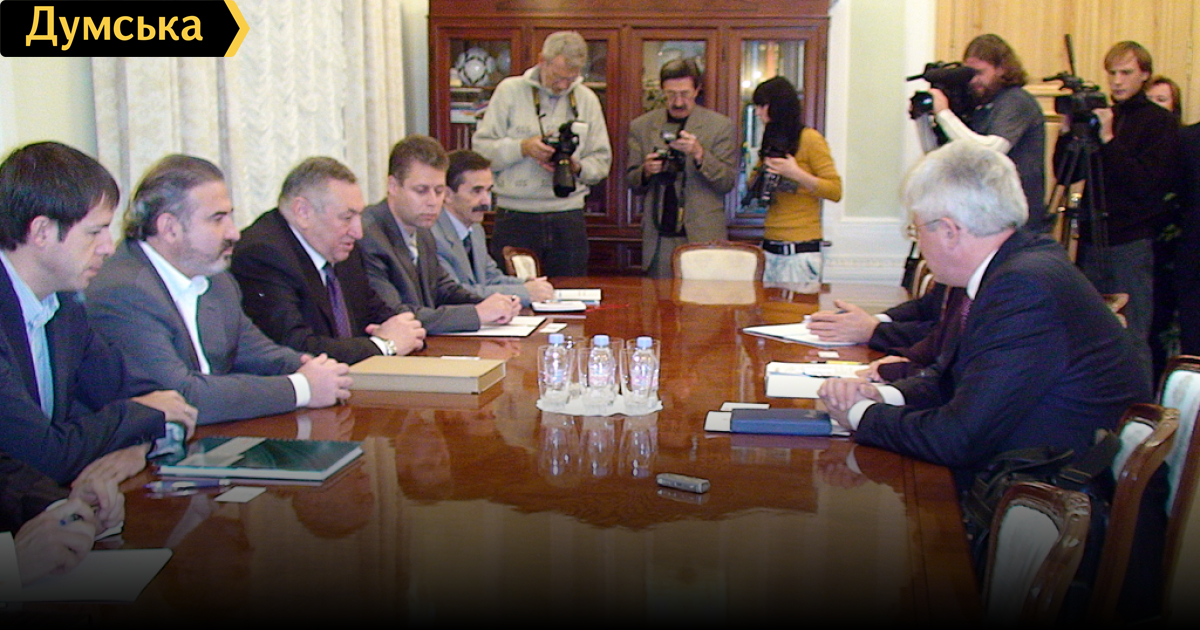 Сегодня прошла встреча городского головы Эдуарда Гурвица с делегацией международных структур. В состав делегации вошли: Дмитрий Крищенко – координатор проектов по развитию инфраструктуры Мирового Банка; Марк Магалецкий – ведущий банкир отдела транспорта Европейского Банка Реконструкции и Развития, и Светлана Грищенко – советник по вопросам инвестиций и инфраструктуры Международной Финансовой Корпорации. Целью встречи было заявлено обсуждение вопросов, связанных с реконструкцией Международного аэропорта Одесса. Сама встреча прошла за закрытыми для прессы дверьми. СМИ пустили только на протокольное рукопожатие и обмен визитными карточками.