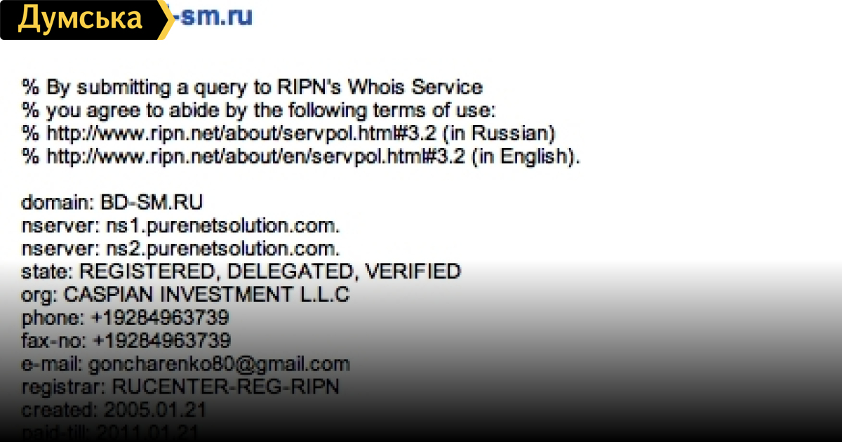 Так выглядела информация о домене bd-sm.ru до пресс-конференции