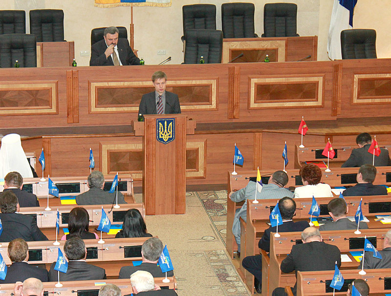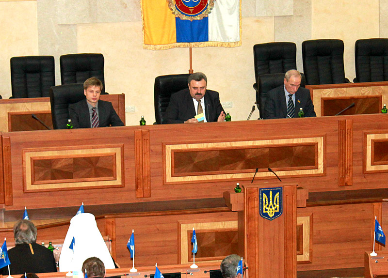 Алексей Гончаренко, Николай Пундик и Николай Тиндюк в президиуме облсовета