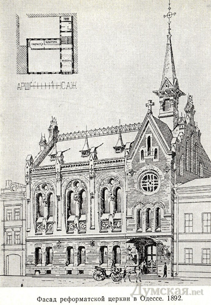 Изначально реформатская община Одессы примкнула к рядам лютеранства и проводила свои богослужения в Одесской Кирхе. В 1842 году общины разделились, и реформаты стали снимать отдельное молитвенное помещение.