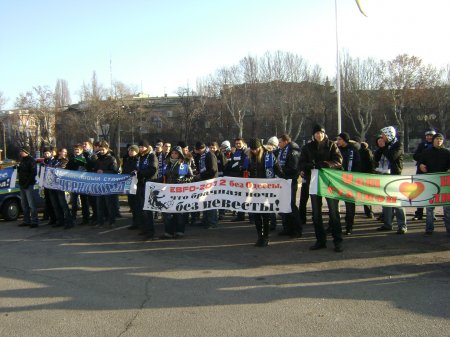 Перед зданием облгосдминистрации на проспекте Шевченко проходит пикет. Около 40-ка молодых людей – фанатов команды «Черноморец» под флагами любимой команды скандируют «Одесса, вперед!» и держат плакаты. Как пояснили пикетчики корреспонденту «Думской.net», они хотят, чтобы депутаты облсовета обратились в Кабмин, к Президенту и ВР с требованием выделить средства на реконструкцию стадиона «Черноморец», и чтобы Одессу не вычеркнули из списка городов, в которых будут проходить игры чемпионата Евро-2012. В эти минуты в зданиия облгосадминистрации проходит сессия областного совета. ![]() СМЕРТЬ РОСІЙСЬКИМ ОКУПАНТАМ! Помітили помилку? Виділяйте слова з помилкою та натискайте control-enter Новини по цій темі: 27 квітня 2024: Футбол: одеський «Чорноморець» програв сільському клубу і залишився на дев`ятій позиції чемпіонату України (фото) 14 березня 2024: Після скандалу в соцмережах обласна військова адміністрація заборонила проводити матч одеського "Чорноморця" з глядачами |