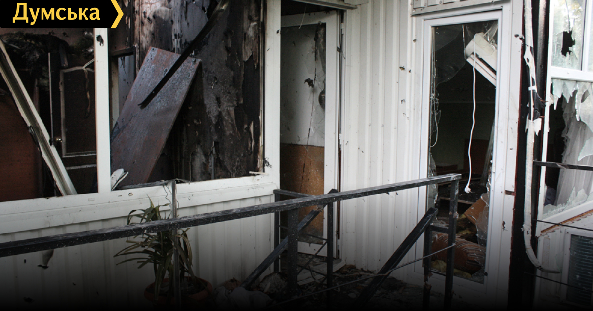 Здание, как снаружи, так и внутри напоминает решето. Все окна выбиты, местами разрушены стены, комнаты, где происходили взрывы и вовсе больше напоминают не жилое помещение, а камеру духовки.