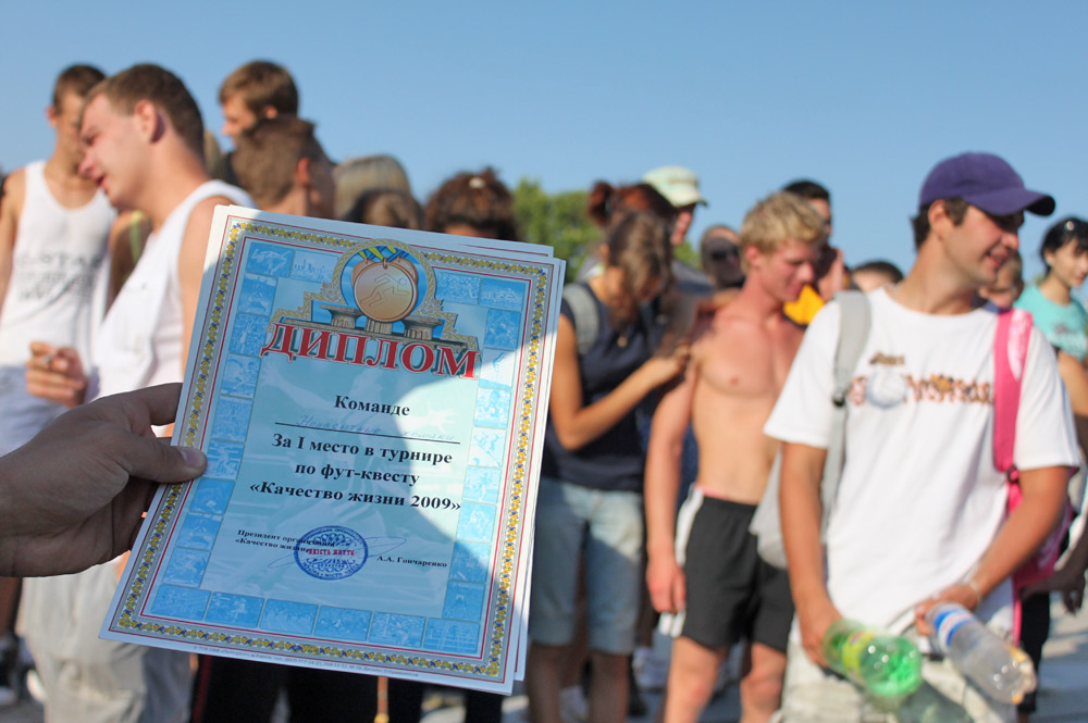 В воскресенье, 30 августа, в 12:00 в парке им. Шевченко стартовал фут-квест «Качество Жизни 2009», посвящённый Дню рождения Одессы, В мероприятии, призванном поддержать активный и здоровый образ жизни среди одесситов и улучшить знания истории города, приняли участие 16 команд, по 4 человека в каждой. В ходе игры участники преодолели 7 этапов, искали «коды», разгадывали загадки, вспоминали и заново узнавали родной город. По словам депутата Одесского горсовета и лидера общественной организации «Качество жизни» Алексея Гончаренко, популяризация истории города, жизни знаменитых одесситов — это один из принципиальных вопросов, которым занимается «Качество жизни». Награждение победителей прошло в 17.00 на площади 10 апреля. Восемь команд, финишировавшие первыми, были отмечены грамотами. Победители получили кубки «Качество Жизни» и ценные подарки. СМЕРТЬ РОССИЙСКИМ ОККУПАНТАМ! Заметили ошибку? Выделяйте слова с ошибкой и нажимайте control-enter