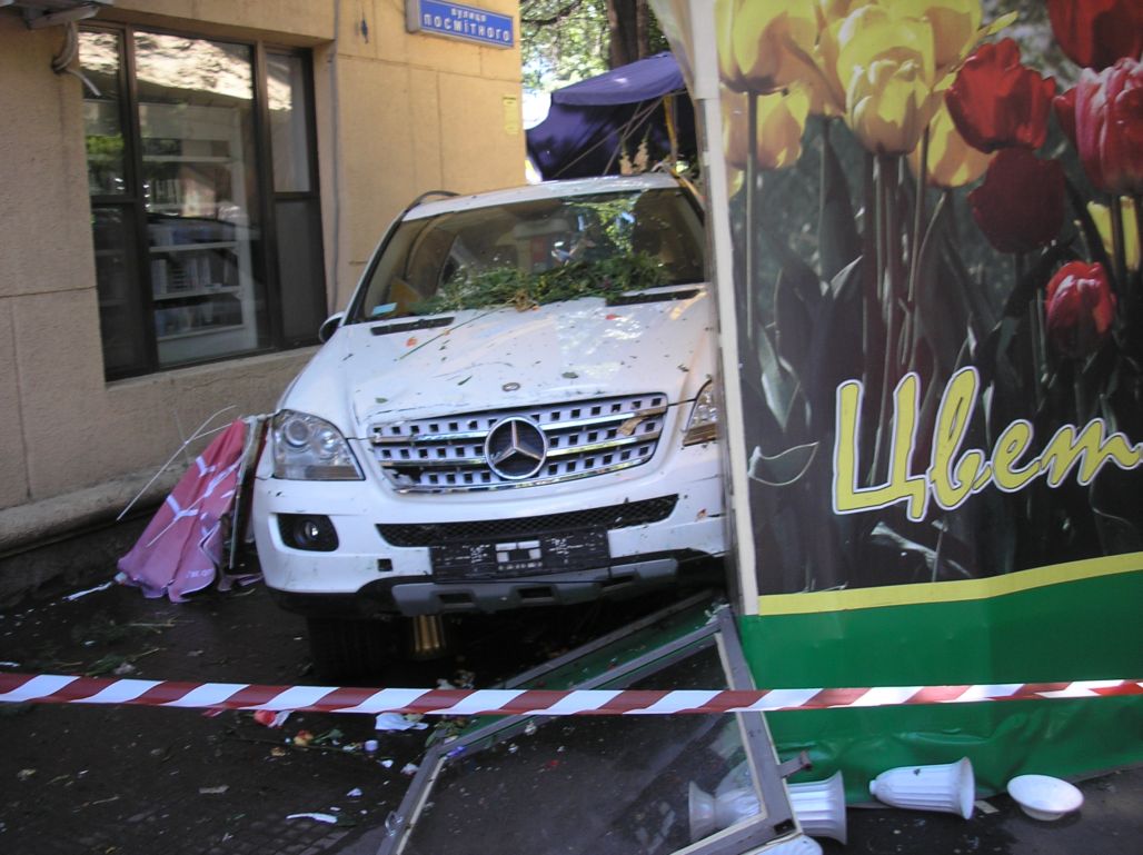 20 июня в 12-10 на регулированном перекрестке ул. Фонтанская дорога — Посмитного произошло столкновение двух автомобилей, — сообщает пресс-служба ГАИ Одессы. По Фонтанской дороге со стороны ул. Петрашевского двигался легковой а/м «Мерседес-МЛ», в прямом попутном направлении двигался а/м «БМВ-745», на регулируемом перекрестке ул. Фонтанская дорога – Посмитного они столкнулись, после чего «Мерседес-МЛ» откинуло влево, где машина наехала на 5-летнюю девочку и трех пешеходов, которые находились на тротуаре. После этого «Мерседес», за рулем которого находилась женщина, продолжил движение и врезался в цветочный ларек. В результате пострадавшая девочка с тяжелыми повреждениями была доставлена в больницу (перелом основания черепа, травматический шок, перелом бедра и другие повреждения). Трое взрослых также доставлены в больницу. С начала июня 2009 года на дорогах города произошло 10 ДТП с участием несовершеннолетних участников дорожного движения, в результате которых 1 подросток погиб, 9 – травмировано. Из них травмировано 5 детей-пассажиров, 4 – пешехода.