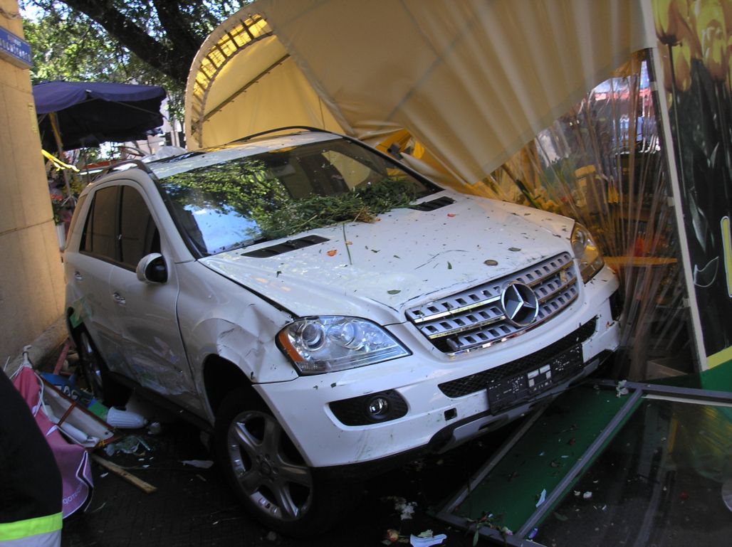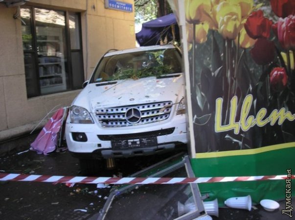 Женщина за рулем Мерседеса сбила четверых пешеходов и заехала в цветочный киоск