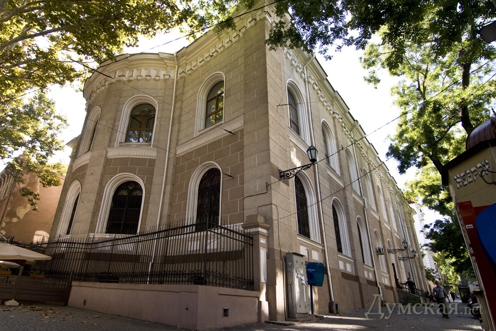 Главная синагога города, расположенная на углу улиц Ришельевской и Еврейской, была построена в 1850 году по проекту архитектора Ф. Моранди.
