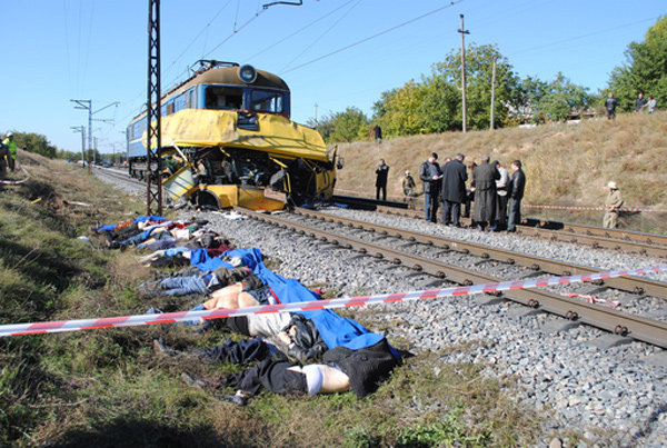 Жертвами столкновения пассажирского автобуса с локомотивом в Днепропетровской области стали 40 человек. «По предварительным данным, погибли 40 человек, пострадали 10», — сказал премьер-министр Украины Николай Азаров, открывая заседание кабинета министров Украины. Перед заседанием члены правительства почтили погибших минутой молчания.