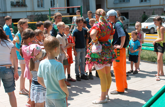 По окончанию субботника дети получили возможность вдоволь насмеятся и поучаствовать в спортивных соревнованиях, благодаря приглашённым клоунам.