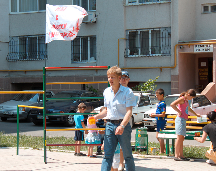 А вообще, молодец Алексей. Построил детскую площадку — репортаж. Покрасил существующую площадку — репортаж. Ждем панегириков на тему «Гончаренко выбросил фантик от конфеты в урну», «Гончаренко перевел бабушку через дорогу» и «Гончаренко не забыл помыть руки после посещения сортира на Думской». Най-най-на-на-на-най, Сережа молодец! (с)