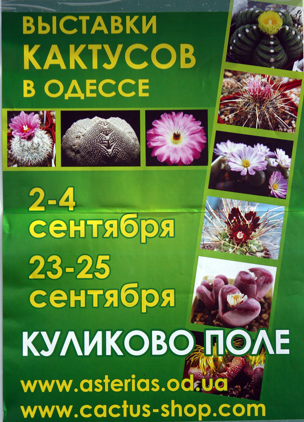 В течение трех дней, с 3 по 5 июня 2011 года на Куликовом поле проходит самая крупная Всеукраинская выставка кактусов, на которую со своими коллекционными растениями приехали кактусоводы из самых разных городов Украины – Харькова, Киева, Черкасс, Николаева, Днепропетровска, Чернигова, Фастова, Винницы, Бахчисарая, Запорожья, Кременчуга, Херсона, Донецка, Львова и Одессы. Более 3 000 видов кактусов и других суккулентов заполонили Куликово поле.