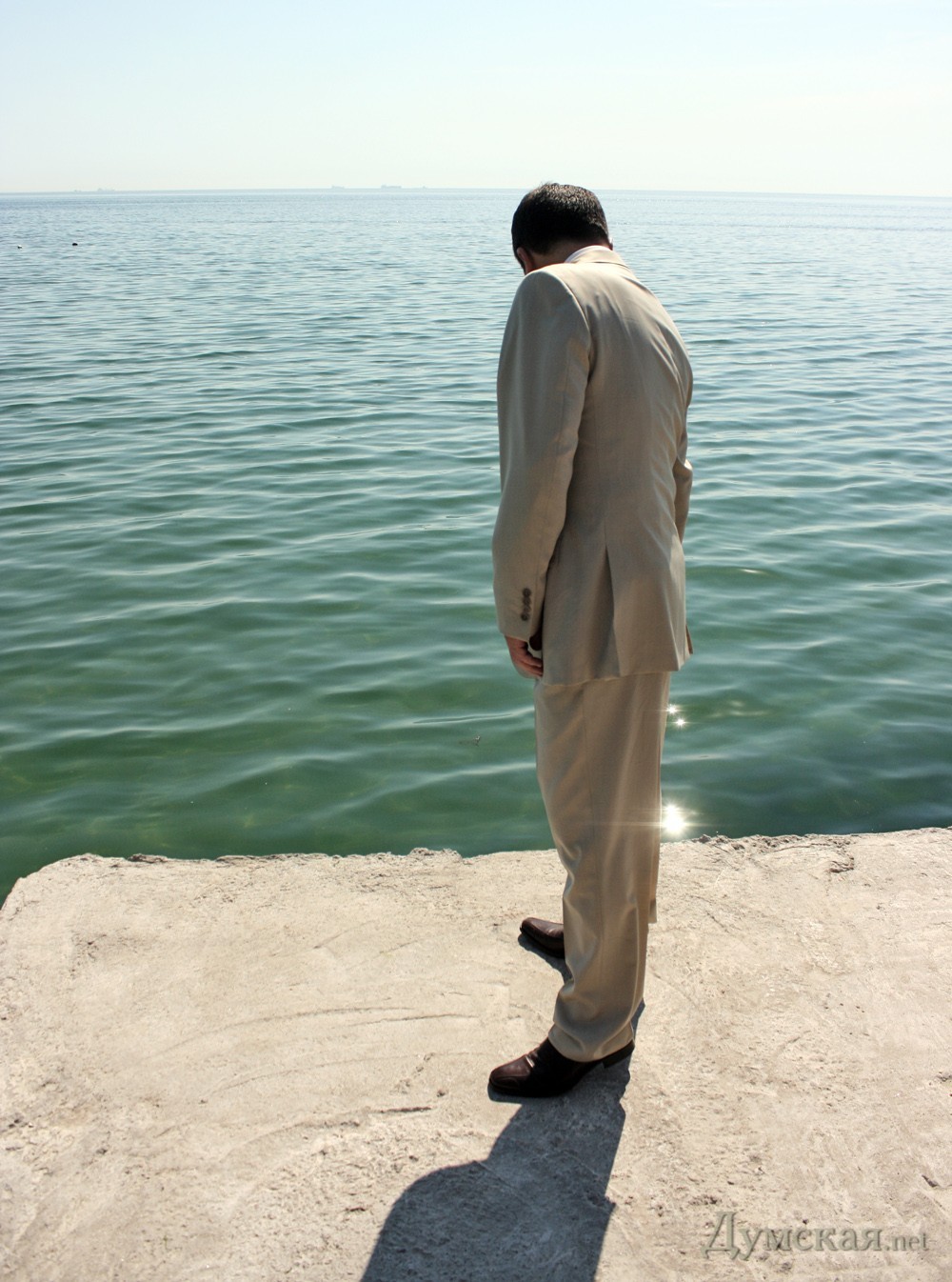 Вы обратили внимание. При каждом визите в Аркадию, он обязательно идет на торец волнолома и с тоской смотрит в даль. К чему бы это. До Одессы в мечтах, он добрался. Неужели о земле обетованной тоскует, но уже в Израиле.