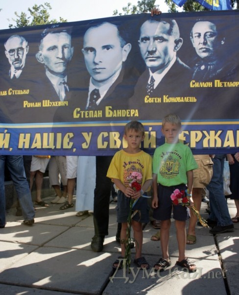 ви просто тупі! розігрують ще одну фігуру, як в грі в шахмати! одні кричать бандера герой другі сталін герой, нас просто травлять одних з другими, а ми всі ведемся на цей бред! поки ми поділені на схід і захід їм на руку!