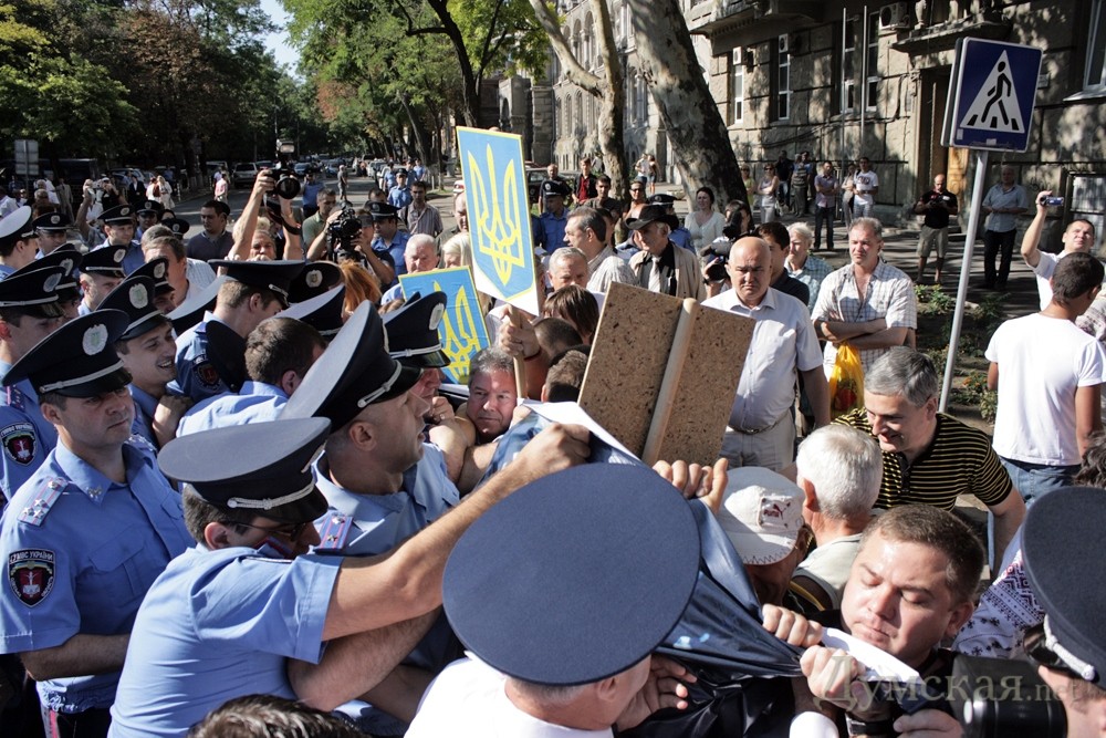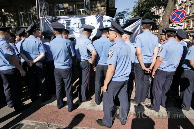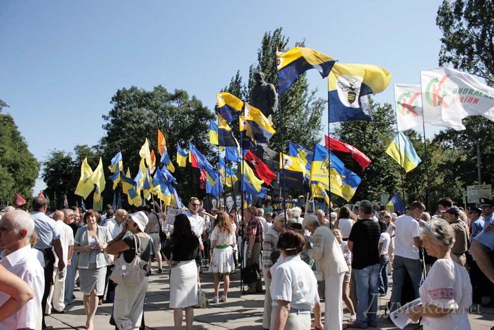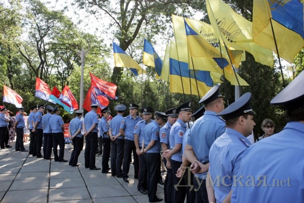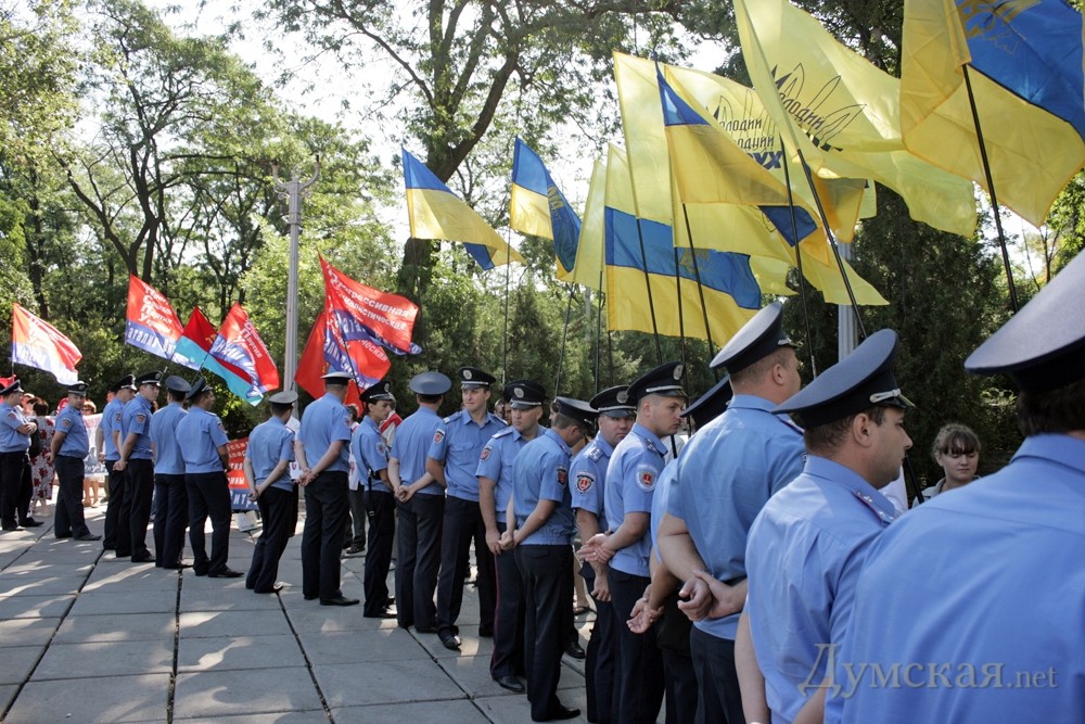 Еще задолго до официального возложения цветов к памятнику Тарасу Шевченко в одноименном парке, возле него заняли место активисты Прогрессивной социалистической партии. К ним пытались прорваться представители одесской «Свободы», но их не пустила милиция, чтобы не провоцировать столкновения. При появлениии представителей областной и городской власти пикетчиков оттеснили от памятника. Возможность возложить цветы и помитинговать у памятника пикетчикам дали только после того, как городской голова, губернатор и председатель облсовета уехали.