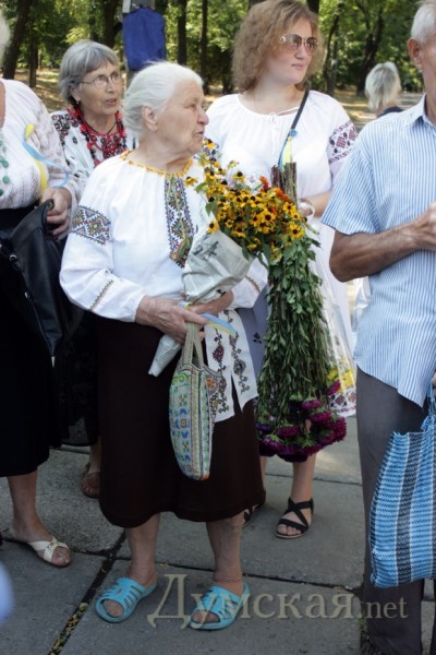 Такой внешний вид — отражение ее культурного уровня. На вышиванку денег хватило, а она недещево стоит. Тапочки — мыльницы — быдлоуниформа.