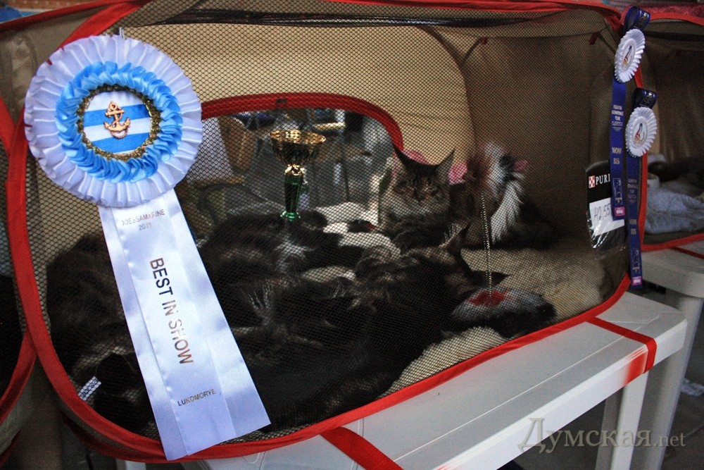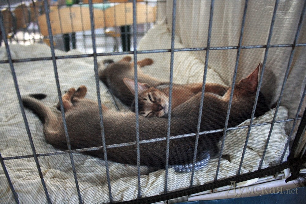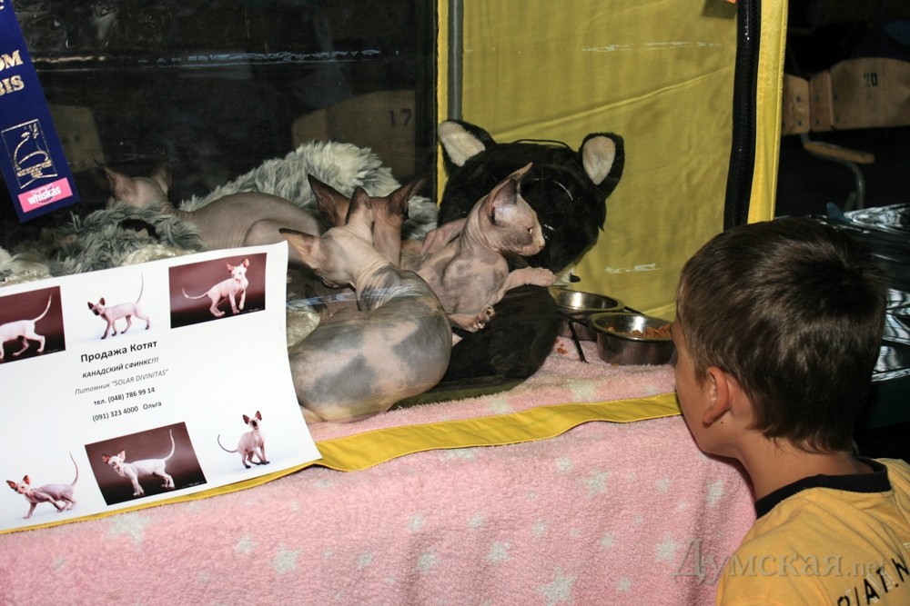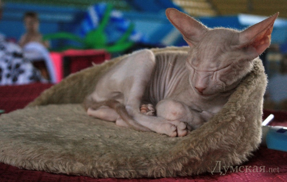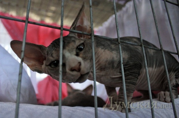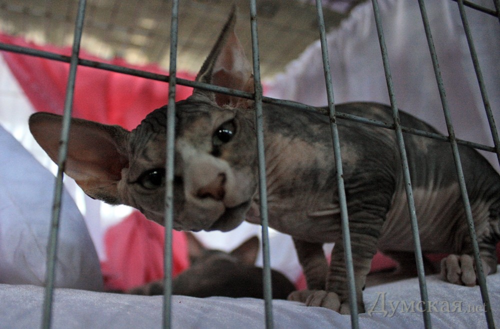 В Одесском Дворце спорта состоялась международная выставка котов, собравшая несколько сотен участников из разных стран и тысячи одесситов, специально пришедших посмотреть на пушистых (а иногда и безволосых), лучших представителей кошачьих семейств из многих стран.