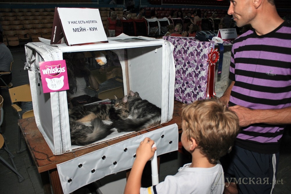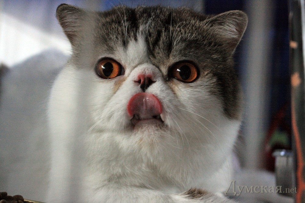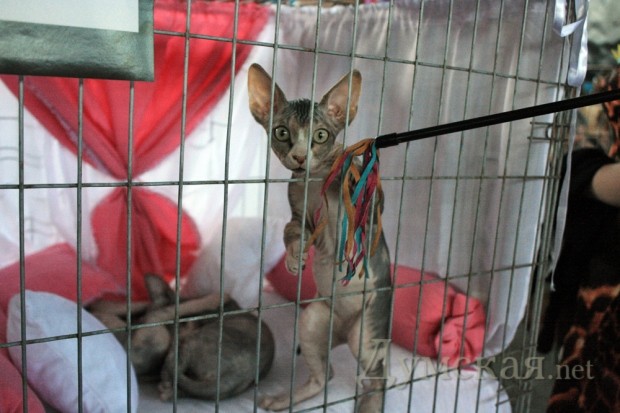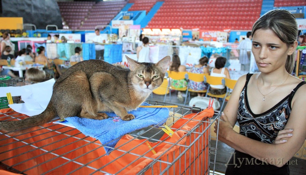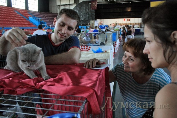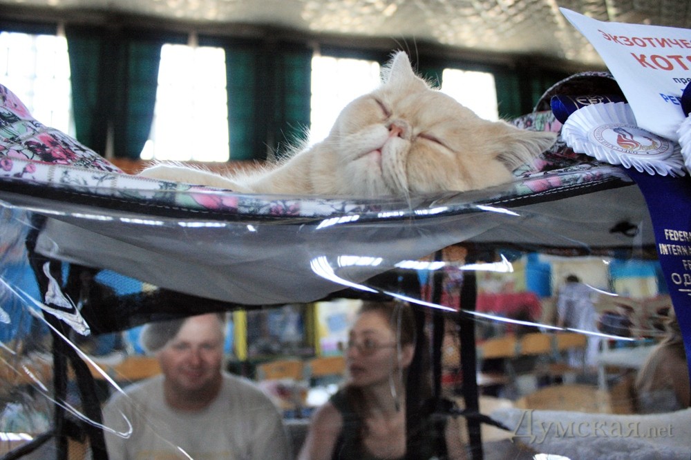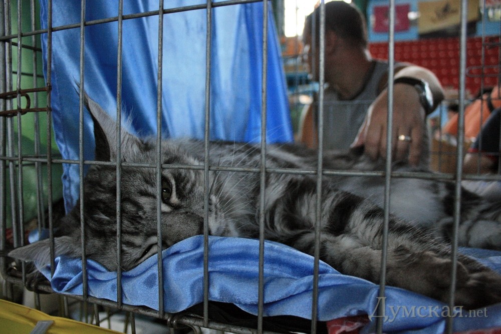 В Одесском Дворце спорта состоялась международная выставка котов, собравшая несколько сотен участников из разных стран и тысячи одесситов, специально пришедших посмотреть на пушистых (а иногда и безволосых), лучших представителей кошачьих семейств из многих стран.
