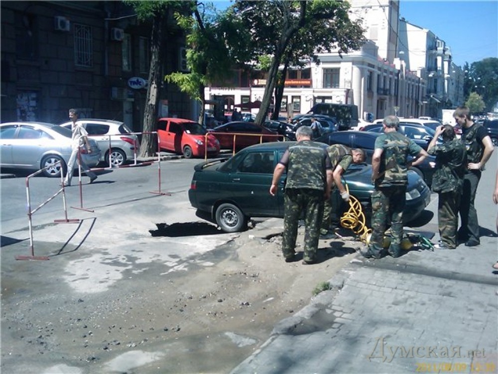 Вообще это очень страшный симптом. За последний месяц я наблюдаю в центре города как-то слишком уж много подобных дырок разного размера и масштаба. Похоже, под тяжестью всех этих свежепостроенных монстров центр начинает-таки ползти в море. Нашим горе-застройщикам на все плевать, вряд ли они проводили исследования на предмет устойчивости каждого дома и всей этой нагрузки в комплексе.