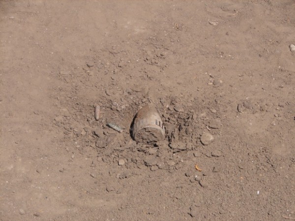 Наш корреспондент стал свидетелем того, как на школьном стадионе у гимназии №8, расположенной на Ицхака Рабина, обнаружили пустой осколок минометной мины времен Великой Отечественной войны и пули от немецкой винтовки времен ВОВ.