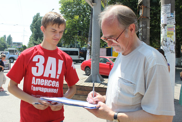 «Цель акции — собрать большое количество подписей и тем самым доказать, что одесситы хотят видеть мэром именно Алексея Гончаренко»